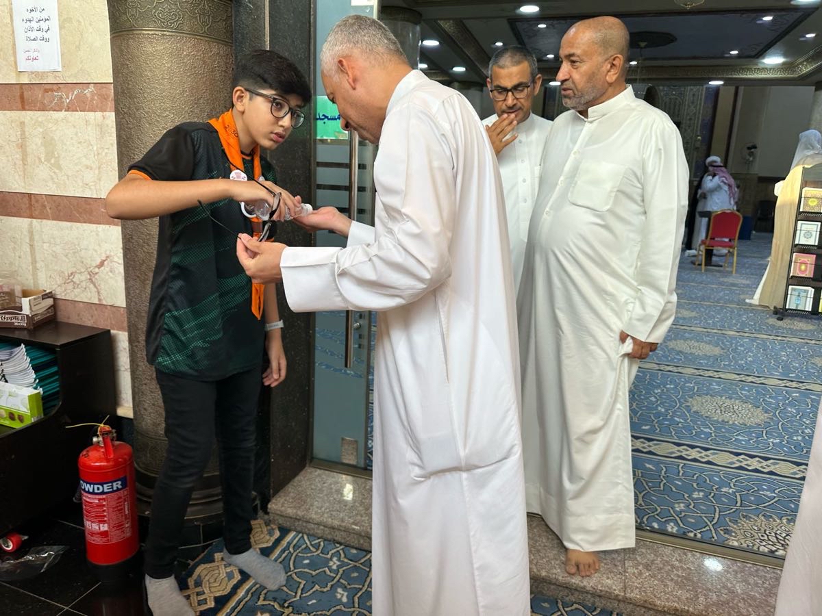 وقدّم أعضاء الفرقة الكشفية، باقة ورد وحلوى، وماء الورد، وبخور، لجميع المصلين بعد صلاة العيد، وهنئوا الجميع بالعيد السعيد، وسط حالة من البهجة التي غمرت الحضور.