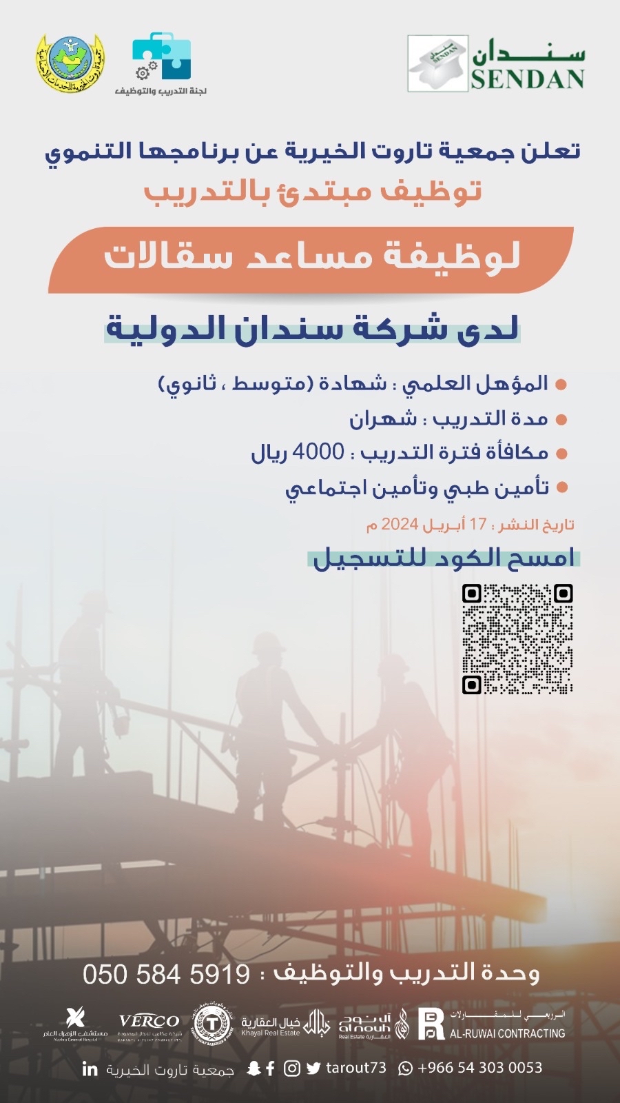 ودعا رئيس مجلس الإدارة بالنيابة عبد السلام آل دخيل، الجمعيات الخيرية في محافظة القطيف، لحثّ منسوبيهم من المستفيدين من الشباب الباحث عن عمل للانضمام للبرنامج والحصول على فرصة تدريب منتهي بالتوظيف، والتسجيل قبل اكتمال العدد المطلوب، موجهاً شكره لمنسوبي وحدة التدريب والتوظيف على جهودهم في التواصل والتنسيق لهذا البرنامج التنموي المميز.