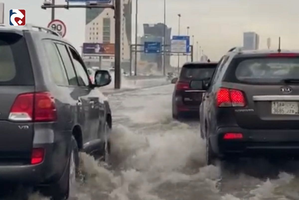 ورصدت عدسات الكاميرات مشاهد لمركبات تعكس مسارها هربًا من تجمعات المياه المتراكمة على الطريق، فضلًا عن الازدحام الشديد الناتج عن إغلاق الأنفاق في الدمام.