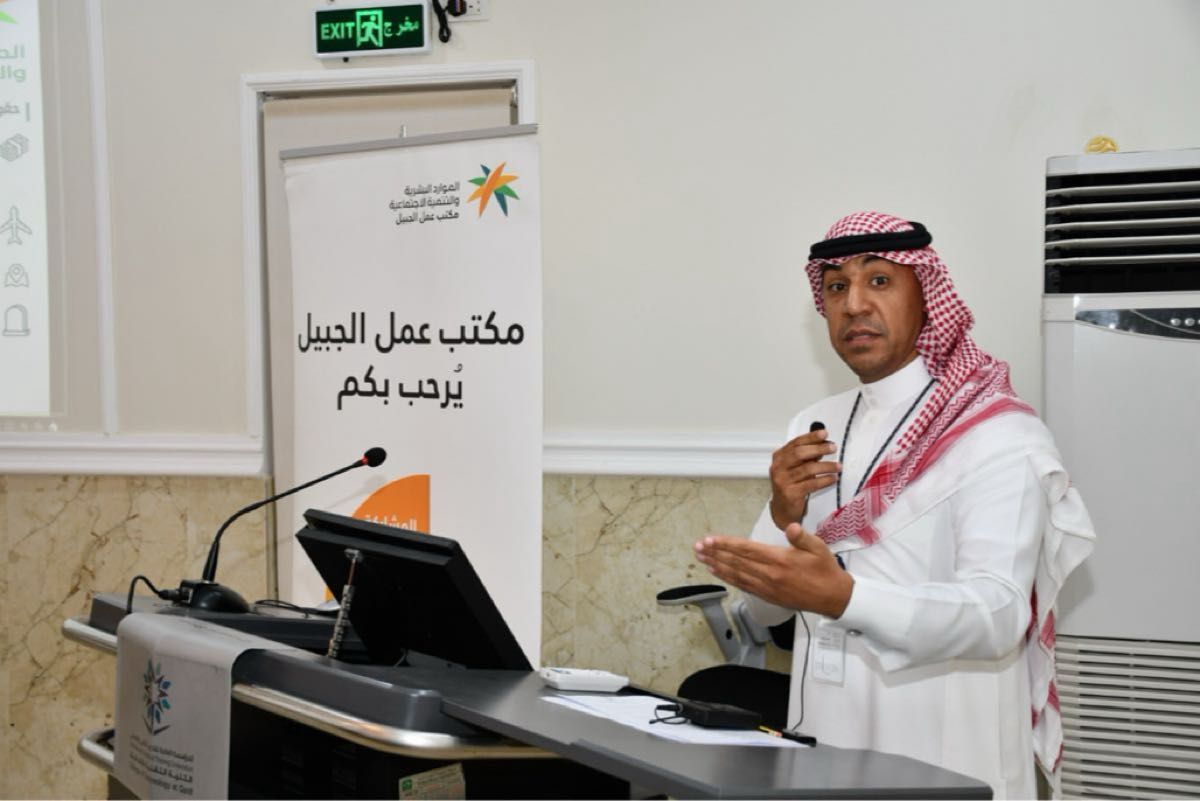 وقدّم حسين همبوبه مدير التسوية الودية بمكتب العمل بالجبيل، محاضرة عن ”عقد العمل“، وعرفه على أنه عقد مبرم بين صاحب عمل وعامل، يتعهد الأخير بموجبه أن يعمل تحت إدارة صاحب العمل أو إشرافه مقابل أجر.