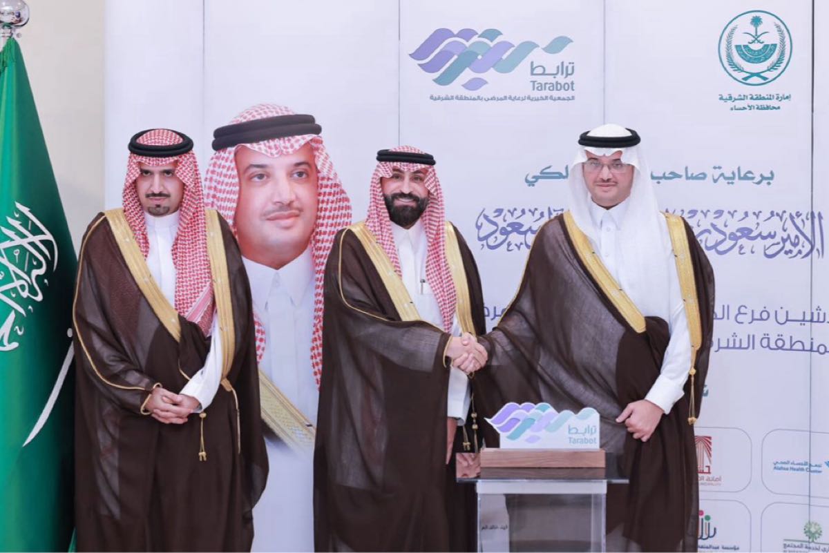 دشّن الأمير سعود بن طلال بن بدر محافظ الأحساء، في مقر المحافظة، اليوم افتتاح فرع الجمعية الخيرية لرعاية المرضى بالمنطقة الشرقية ”ترابط“، بحضور عددٍ من أصحاب السعادة مسؤولي الجهات الحكومية والقطاع الخاص.