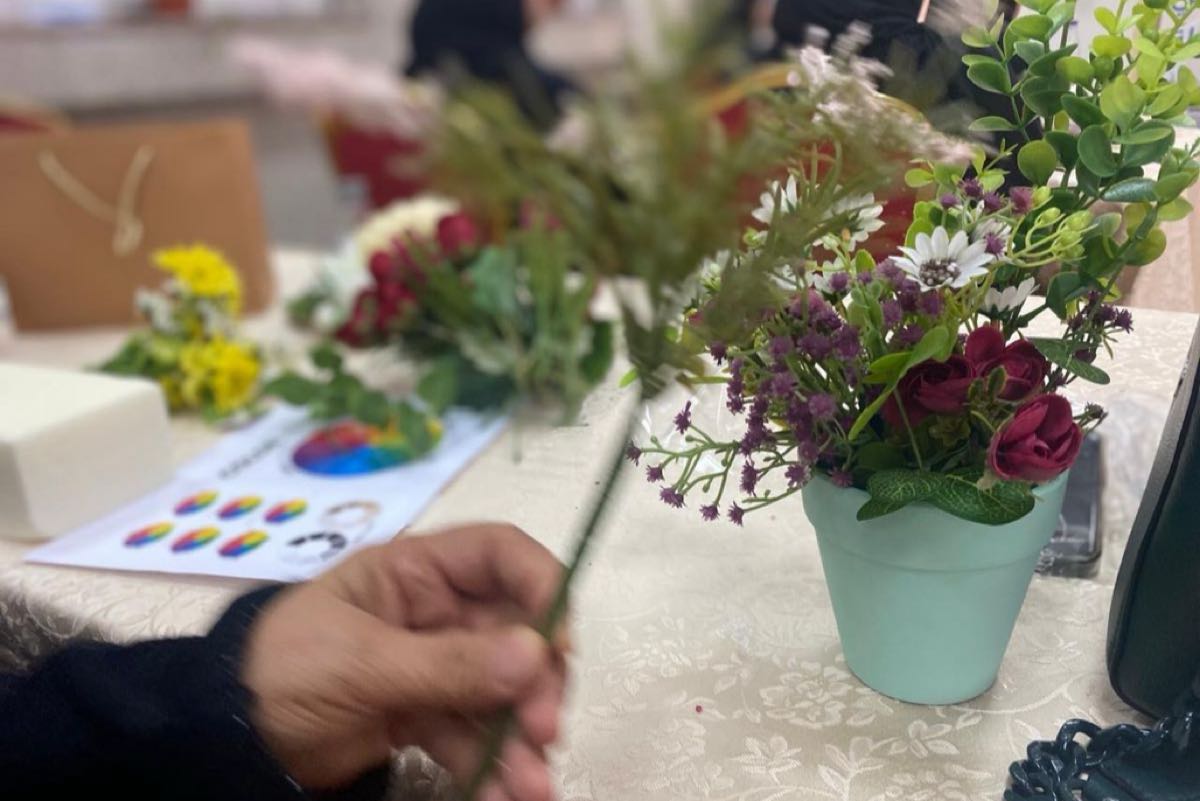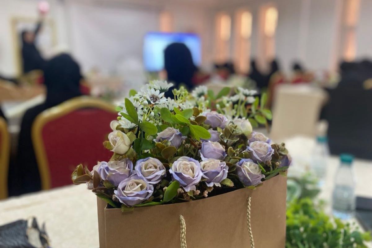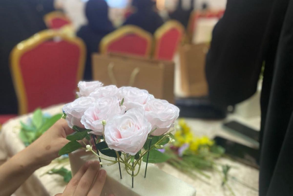 كما نظم المكتب ورشة عمل أخرى لتنسيق الزهور قدمتها حميدة الناصر استفادت منها 20 مستفيدة، حيث تعلموا أنواع الزهور، وطرق العناية بها، والأدوات المستخدمة في التنسيق، إضافة إلى التدريب العملي على تنسيق الورود وتغليفها.