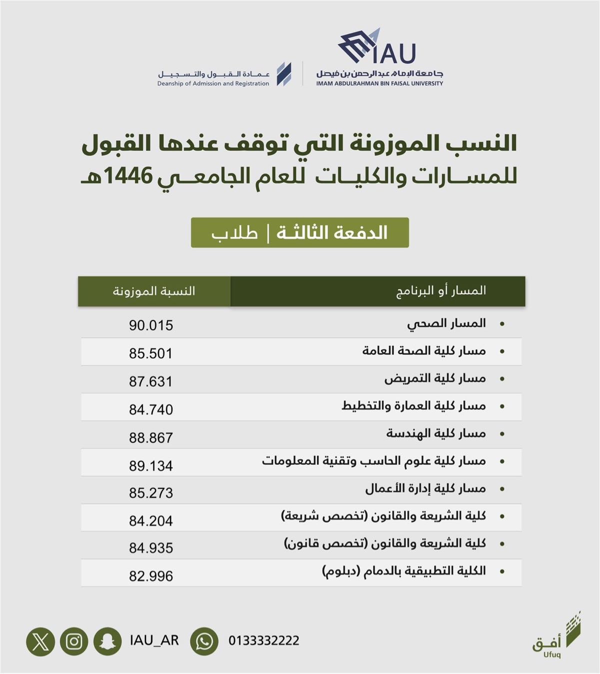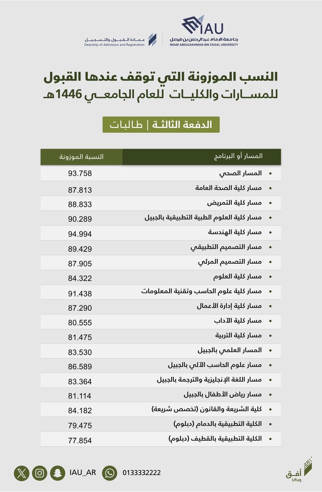 جامعة الإمام عبدالرحمن بن فيصل تعلن الدفعة الثالثة «الأخيرة» من المقبولين