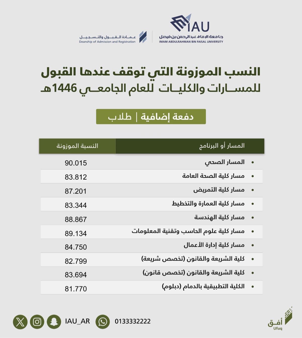 جامعة الإمام عبدالرحمن بن فيصل تكشف تفاصيل الدفعة الإضافية للقبول