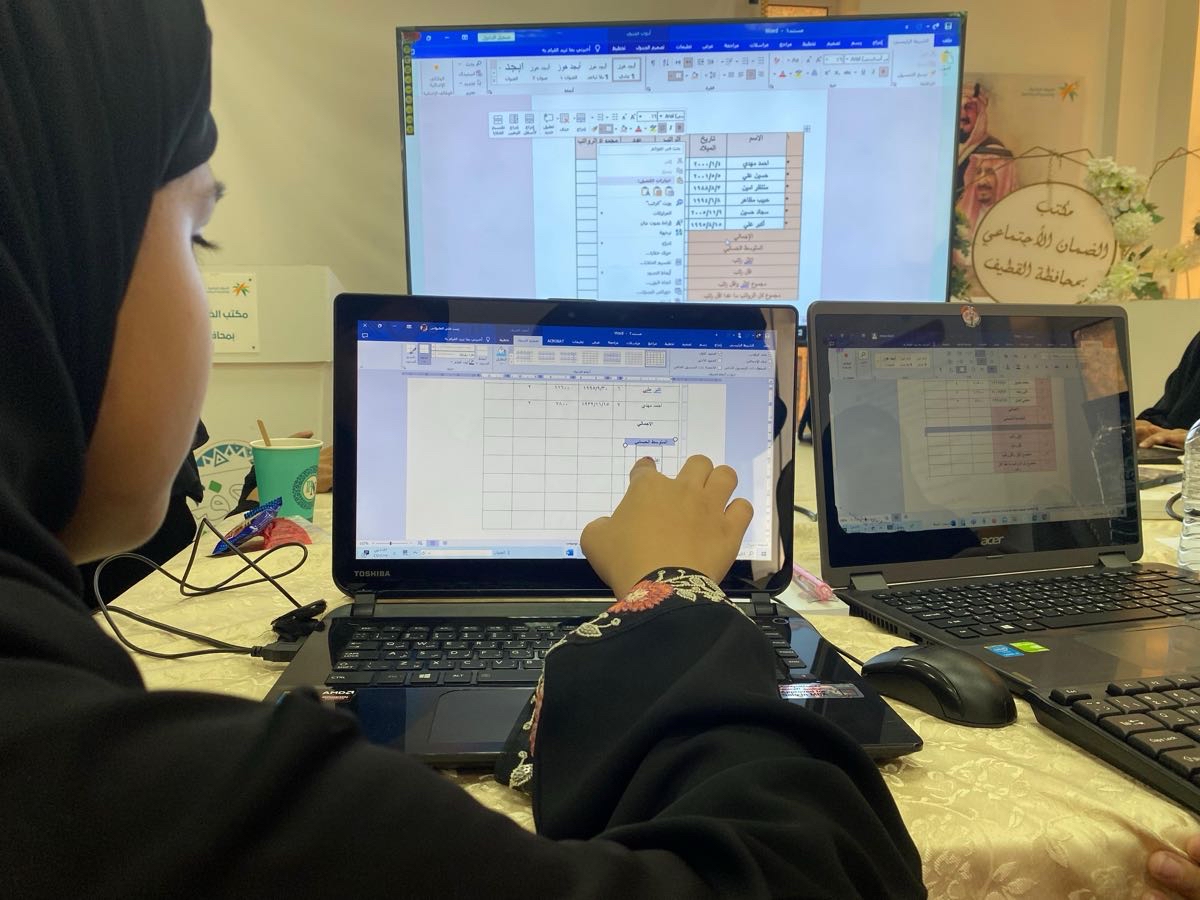ونظم المكتب ورشة تدريبية تحت عنوان ”معالجة النصوص في برنامج“ مايكروسوفت ورد"، واستمرت لمدة يومين، وقدمتها المدربة حميدة الناصر، واستهدفت فيها 20 من الناشئات من مستفيدات الضمان الاجتماعي من عمر 12 إلى عمر 18 سنة.