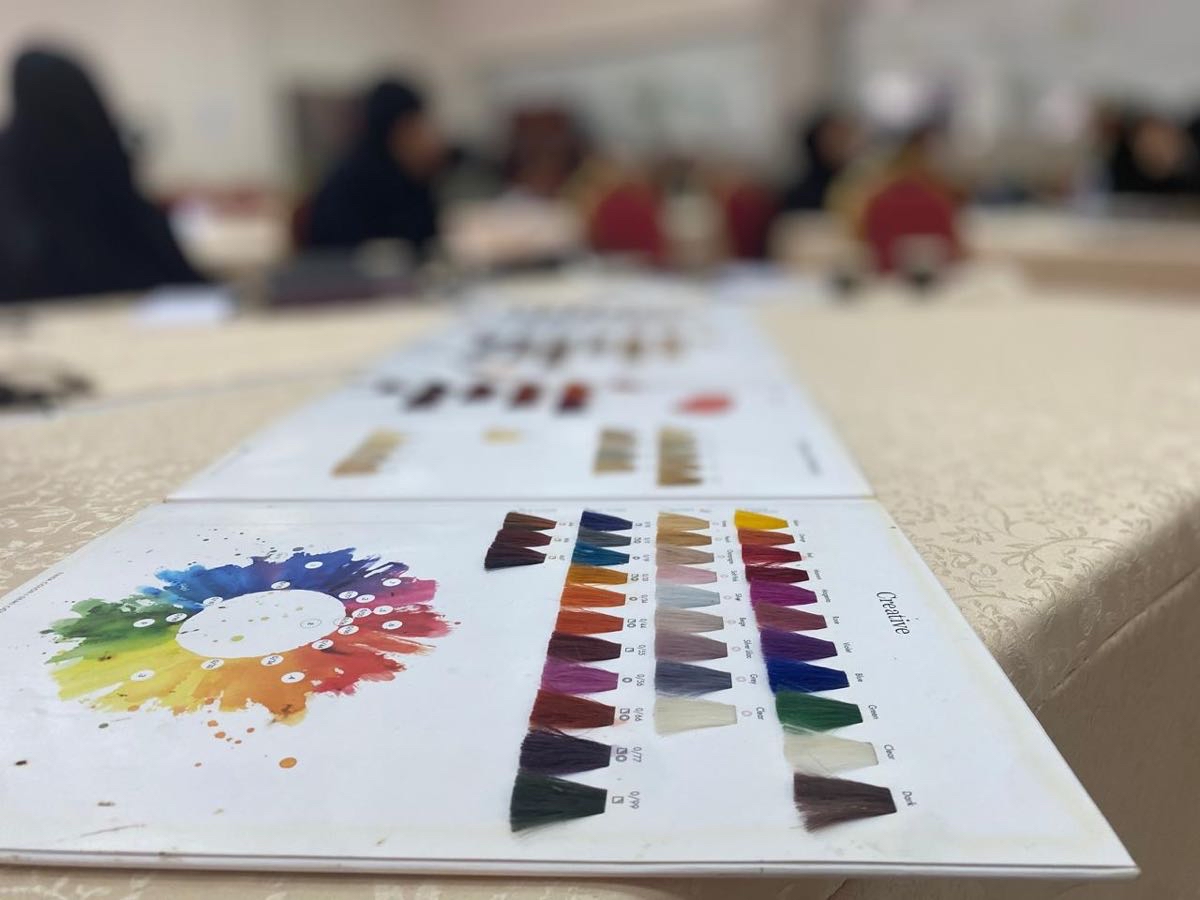 وشهدت الورشة الأولى ”تقنيات صبغ الشعر وعلاجه“، التي قدمتها المدربة نورما الأشقر، على مدار ثلاثة أيام، تدريب 25 مستفيدة، وتضمنت الورشة عدة محاور، أهمها التعرف على أنواع الشعر وتركيبته، ودرجات تفتيح الشعر، ودائرة الألوان وأهميتها وكيفية سحب اللون الآمن للشعر.