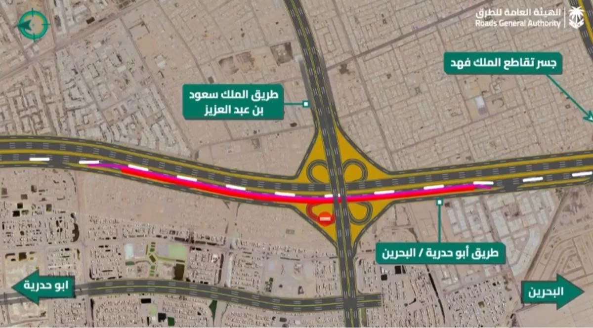اليوم.. إغلاق مداخل ومخارج تقاطع طريق الملك سعود مع أبو حدرية