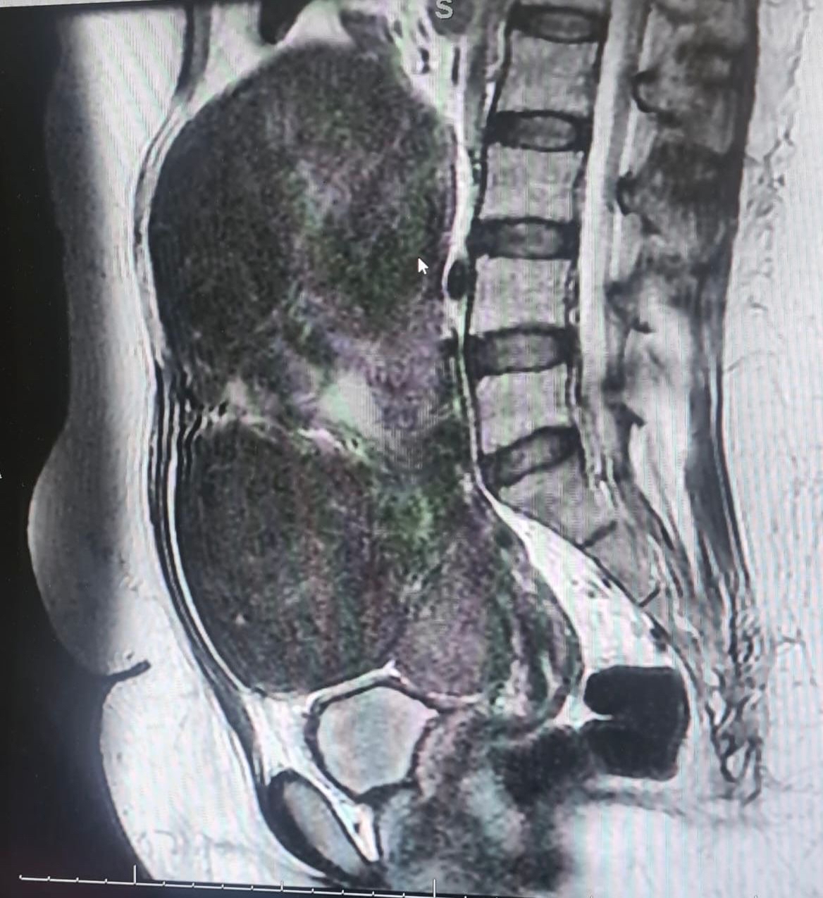 وكانت السيدة تعاني من آلام شديدة وانتفاخ في البطن، مصحوبة بنزيف مستمر استدعى نقل الدم إليها عدة مرات. وبعد إجراء الفحوصات اللازمة، كشفت الأشعة الصوتية والرنين المغناطيسي عن وجود عدة أورام ليفية حميدة تملأ تجويف البطن، أكبرها يتجاوز حجمه 20 سنتيمترًا.