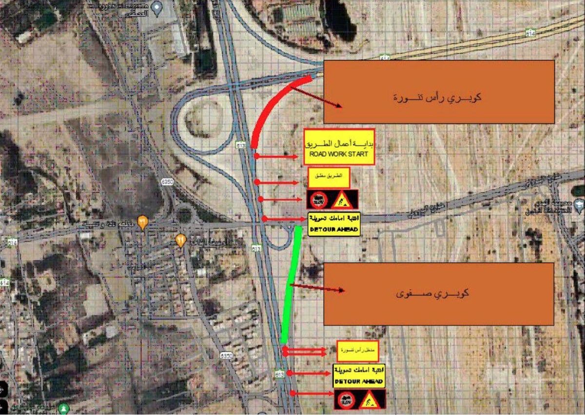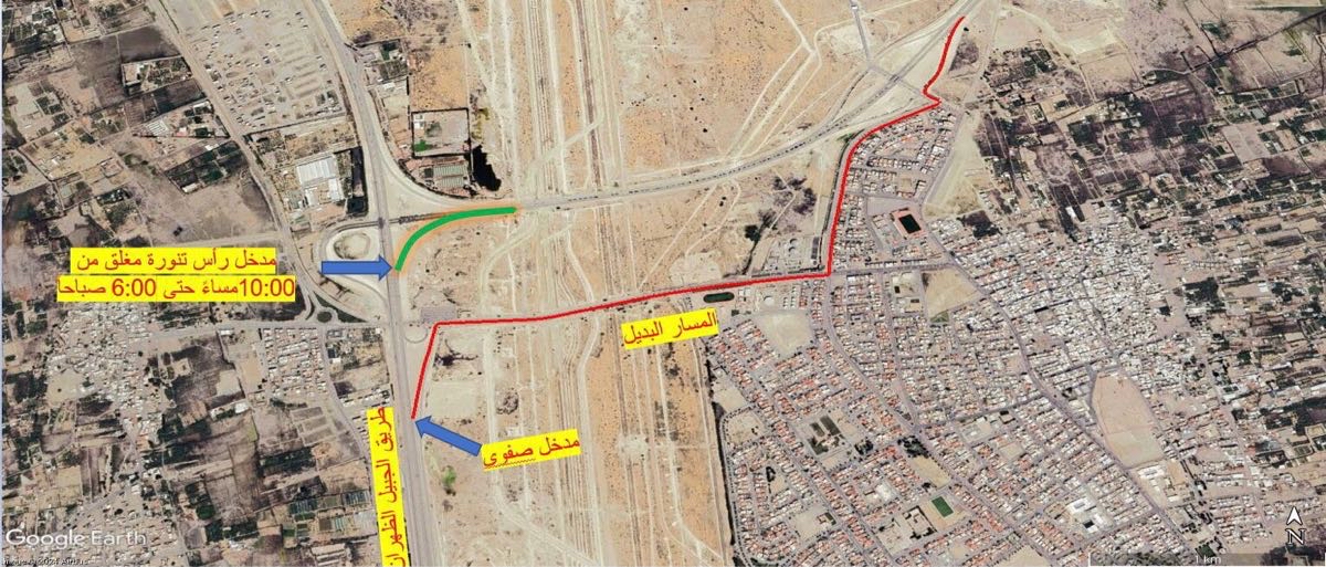 ولضمان سلامة وأمن مستخدمي الطريق، سيتم تحويل الحركة المرورية إلى مخرج صفوى لمدة 3 أيام.