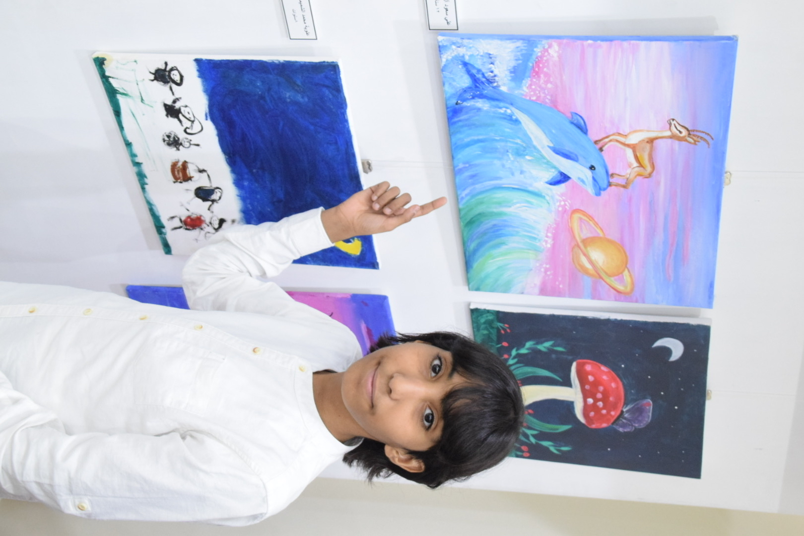 وتنوعت مواضيع اللوحات المعروضة، حيث رسم الأطفال شخصيات وطبيعة صامتة وأشياء لونية، معبرين عن رؤيتهم الفنية ومشاعرهم. وتراوحت أعمار المشاركين بين 5 و 14 عامًا.