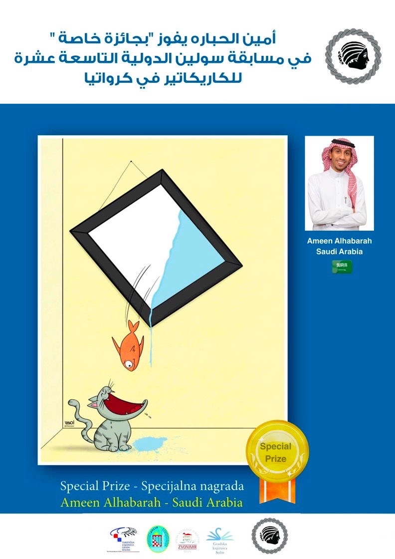 حقق فنان الكاريكاتير السعودي أمين الحباره إنجازًا جديدًا يضاف إلى سجله الحافل، حيث حصد ”جائزة خاصة“ في مسابقة سولين الدولية التاسعة عشر للكاريكاتير في كرواتيا.