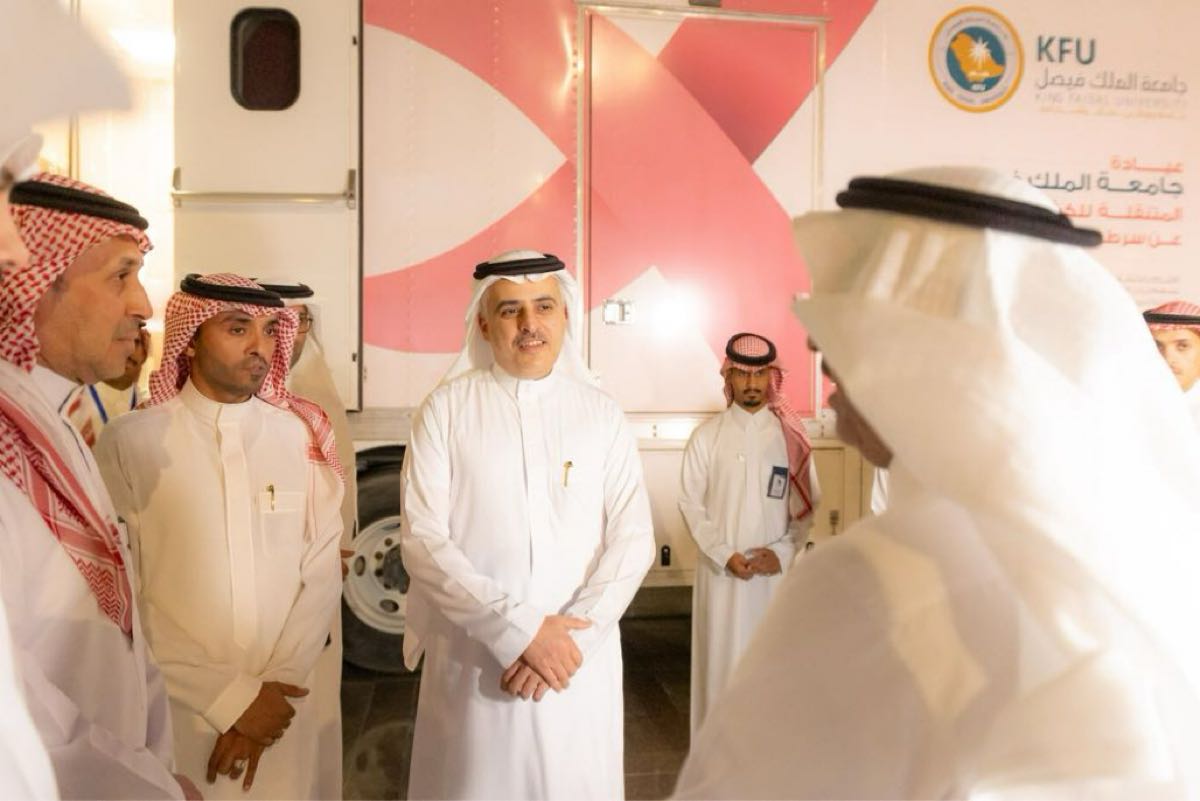 دشن تجمع الأحساء الصحي، الحملة التوعوية للكشف المبكر عن سرطان الثدي في مجمع العثيم، بالتعاون مع جامعة الملك فيصل وعدد من الجهات الحكومية، والجمعيات الخيرية ومراكز النشاط الاجتماعي، وذلك تحت رعاية الأمير سعود بن طلال بن بدر آل سعود محافظ الأحساء.