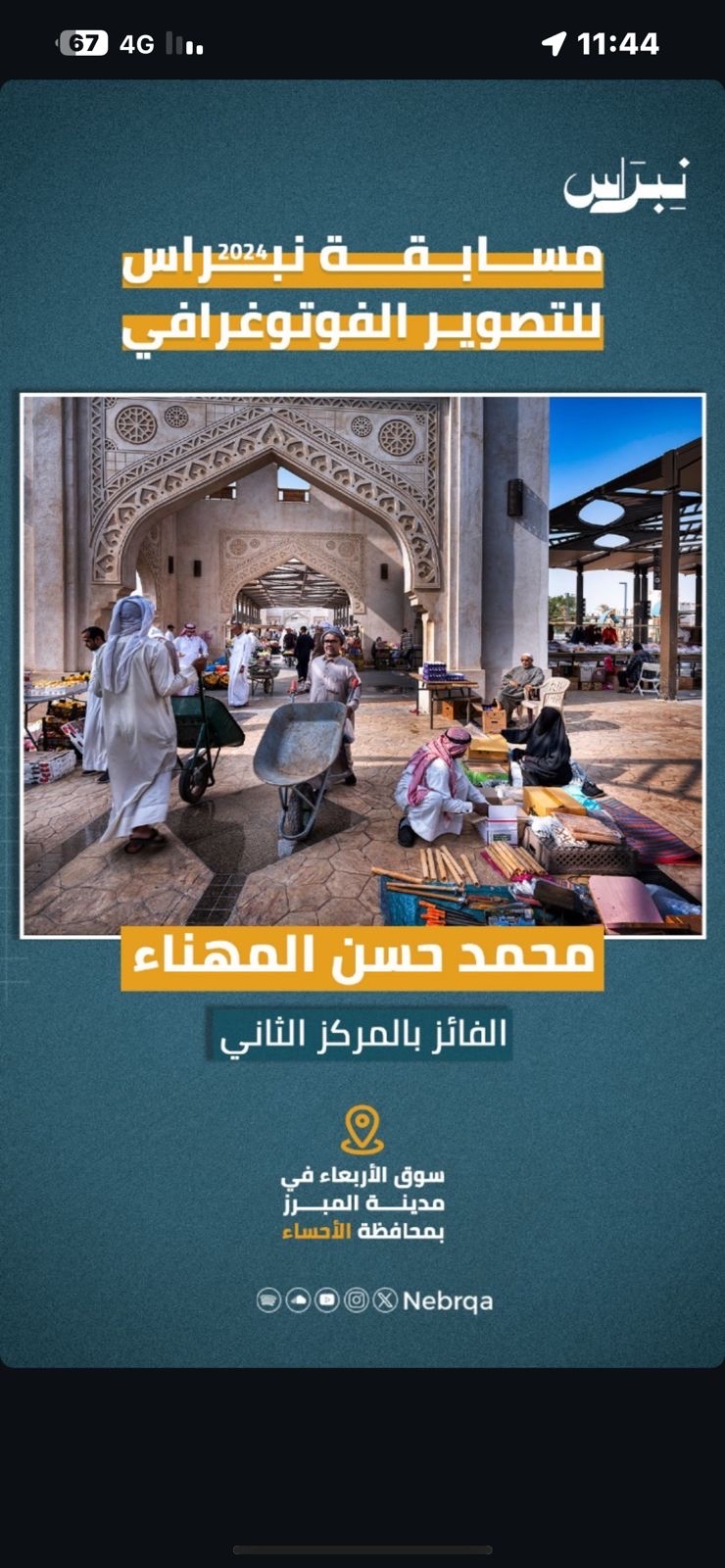 ”المهنا“ يحصد فضية ”نبراس“ بتوثيق سوق الأربعاء الشعبي بالأحساء