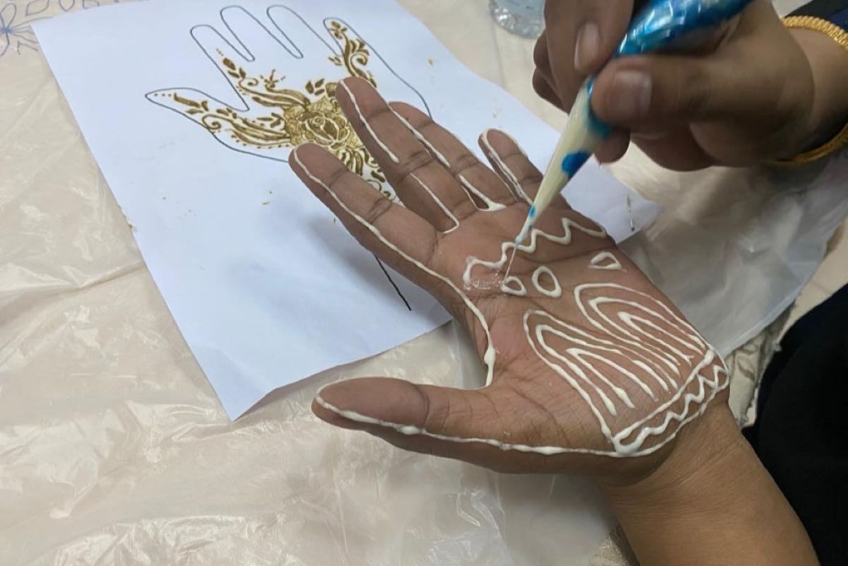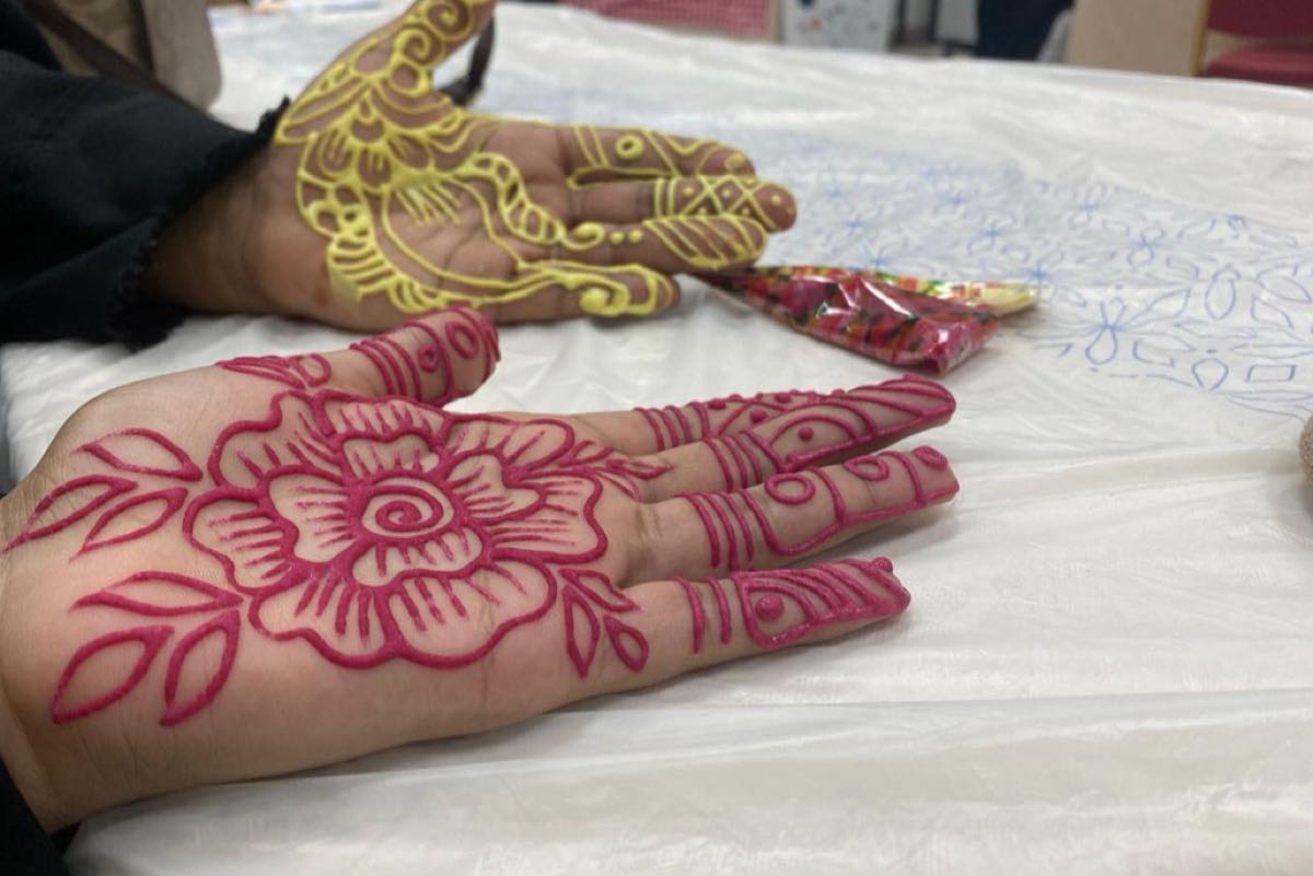 بالصور.. 30 مستفيدة يتعلمن ”فن نقش الحناء“ في ورشة بـ ”ضمان القطيف“