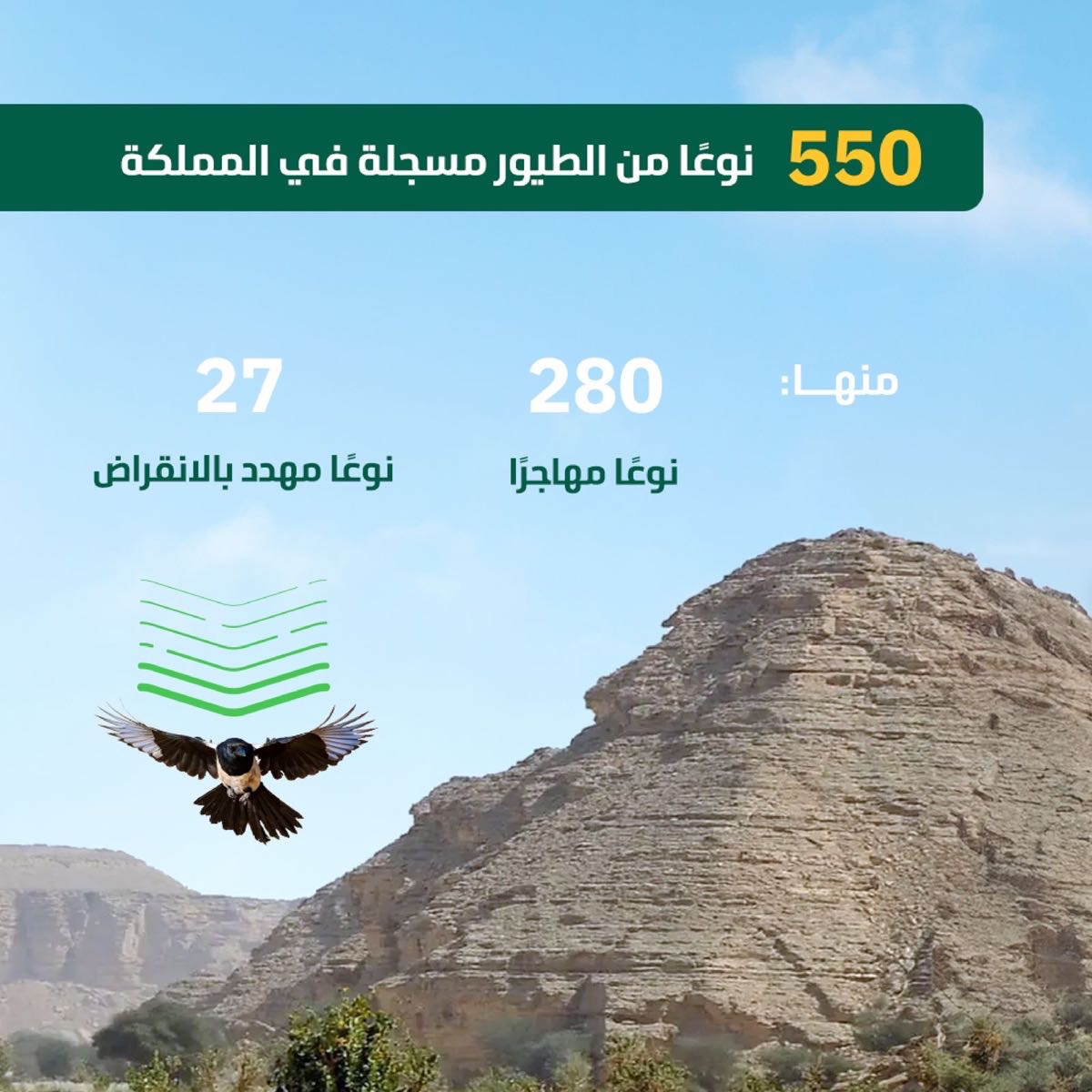 المملكة تحتضن 550 نوعاً من الطيور.. و 27 منها مهددة بالانقراض