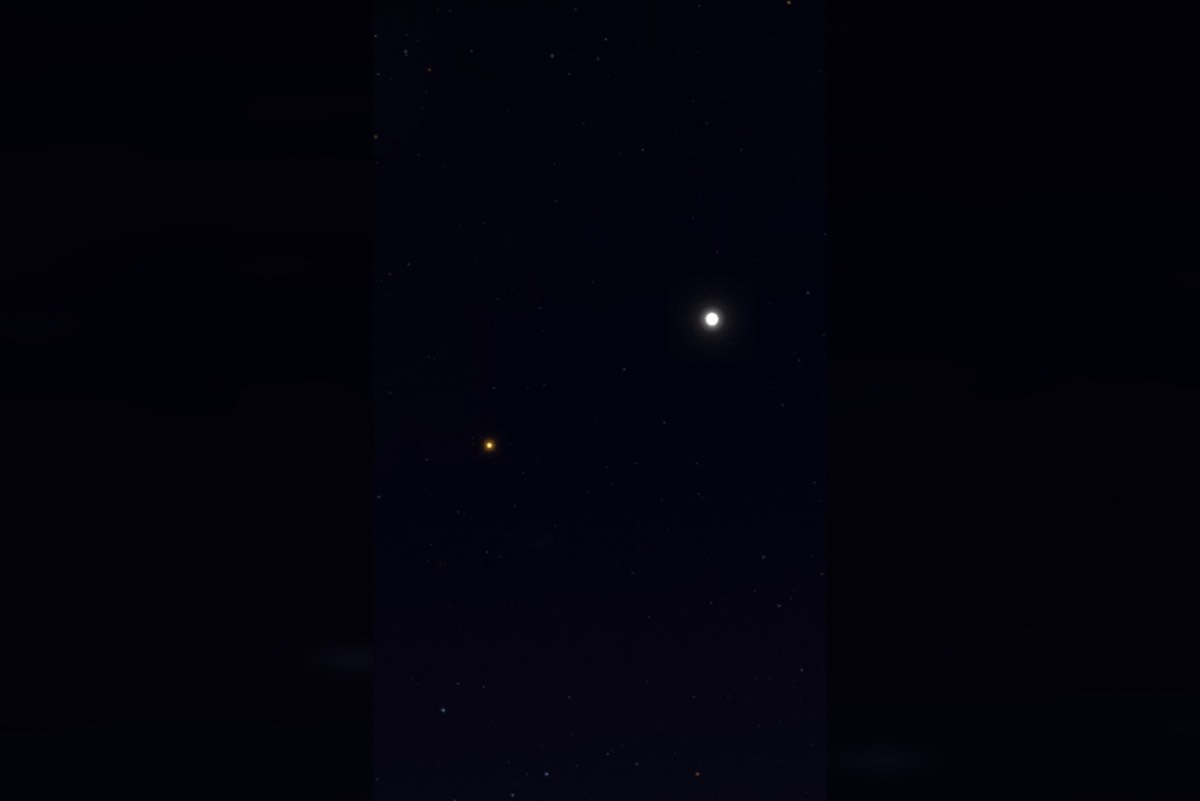 وأشار إلى أنه خلال اليومين التاليين سيبقى الزهرة بالقرب من قلب العقرب ولكن سوف يتغير الموقع الظاهري بالنسبة لبعضهما وذلك نتيجة لحركة الزهرة الدائمة حول الشمس وبعد ذلك سوف تزداد الفجوة بين الكوكب وقلب العقرب.