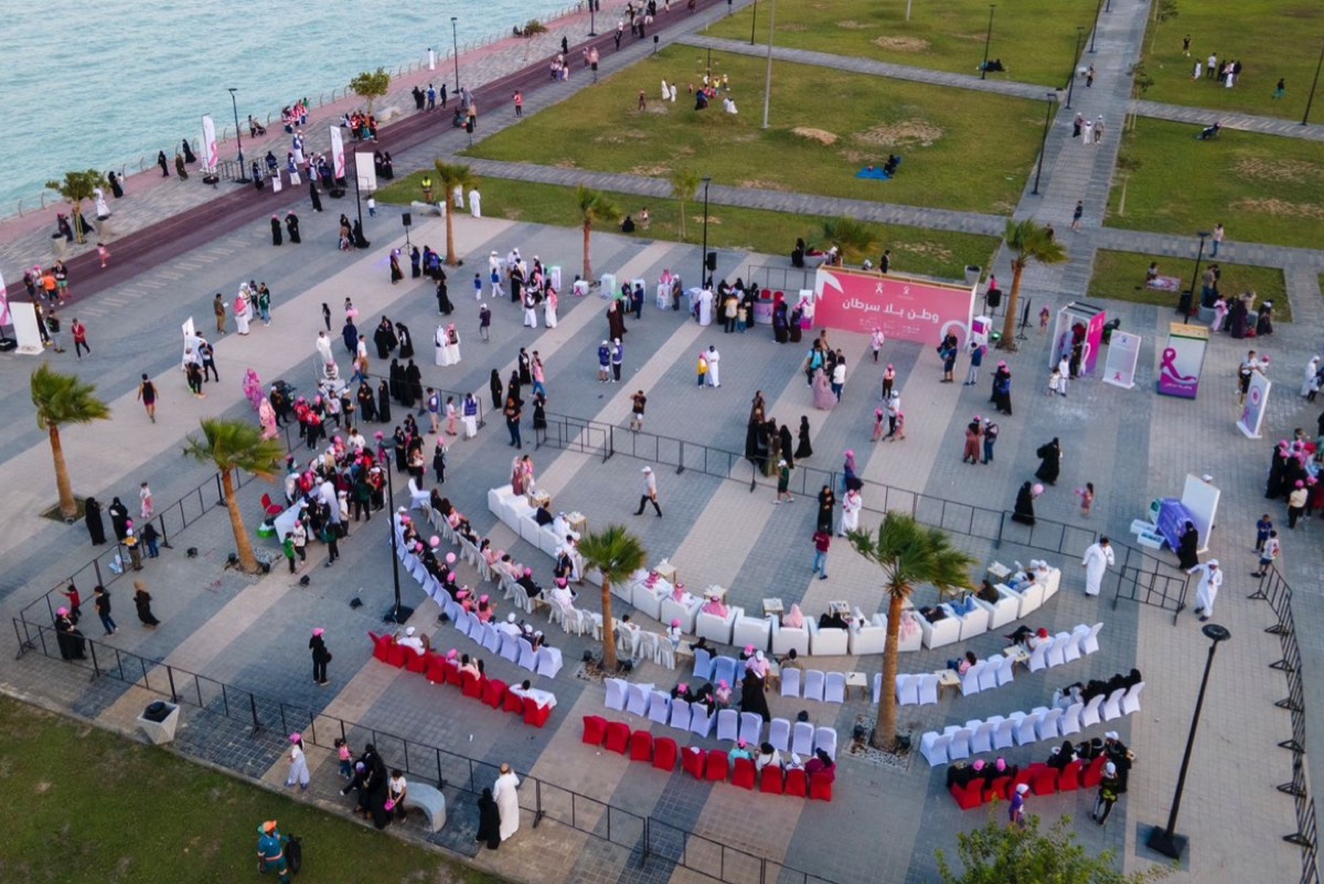 أقامت جمعية السرطان السعودية، ماراثون سنوي خيري، شهد مسيرة لأكثر من 1200 مشارك، لمشي مسافة 2 كيلو في كورنيش ثروة بالراكة، وذلك في ختام فعاليات شهر أكتوبر للتوعية بـ ”سرطان الثدي“، ضمن حملة ”الشرقية وردية 16“.