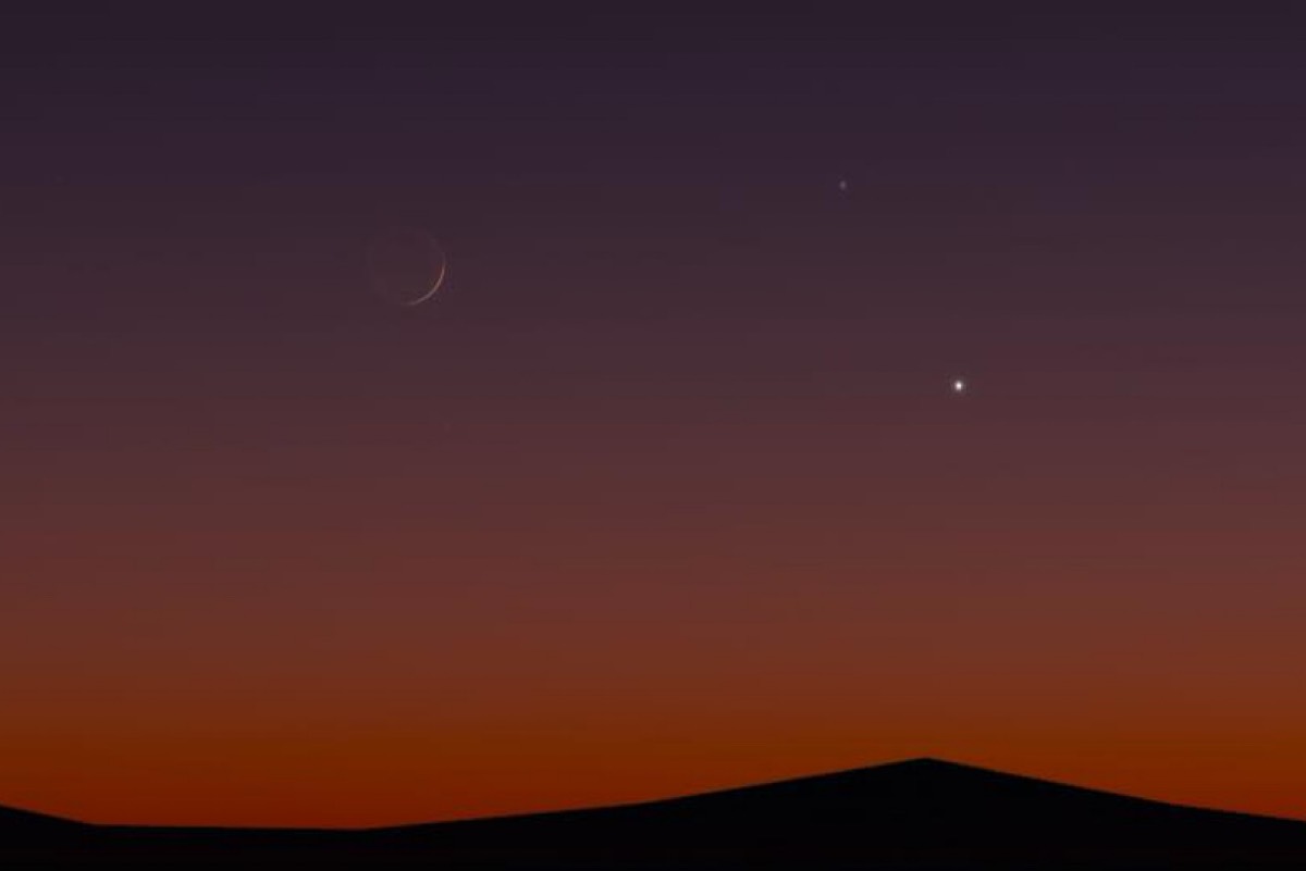 وأوضح أن هلال القمر سيكون في حالة اقتران بكوكب عطارد، حيث ستفصل بينهما درجتان، وأن القمر سيكون قد ابتعد عن وهج ضوء شمس الغروب، وأصبح مرتفعًا في السماء، مقارنة بالليلة الماضية.