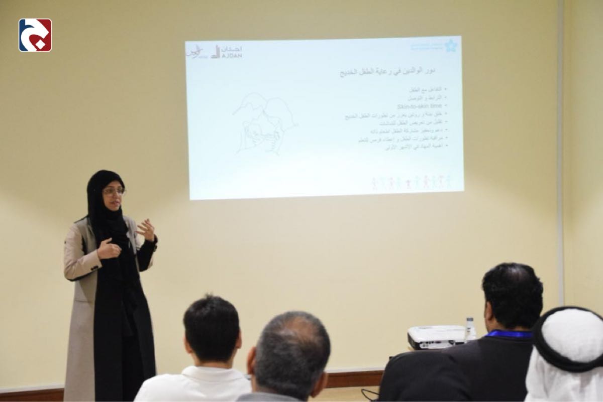 وناقشت كذلك دور الوالدين في رعاية الطفل الخديج ودور أخصائي التأهيل العلاج الطبيعي الوظيفي، والتخاطب والسلوك، وطرق وخطوات الاهتمام بالطفل الخديج وبتطوراته الحركية الذهنية.
