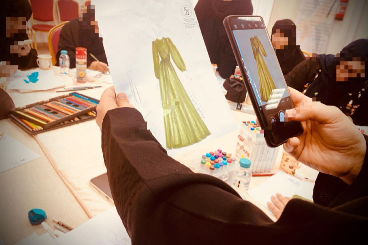 وشرحت آل ادخيل قواعد الرسم في الأزياء، وخطواته التي تشمل فهم تشريح الجسم البشري، ومعرفة أبعاد ونسب كل جزء منه، لمساعدة المتدربات على رسم الملابس بما يتناسب مع هيكل الجسم.