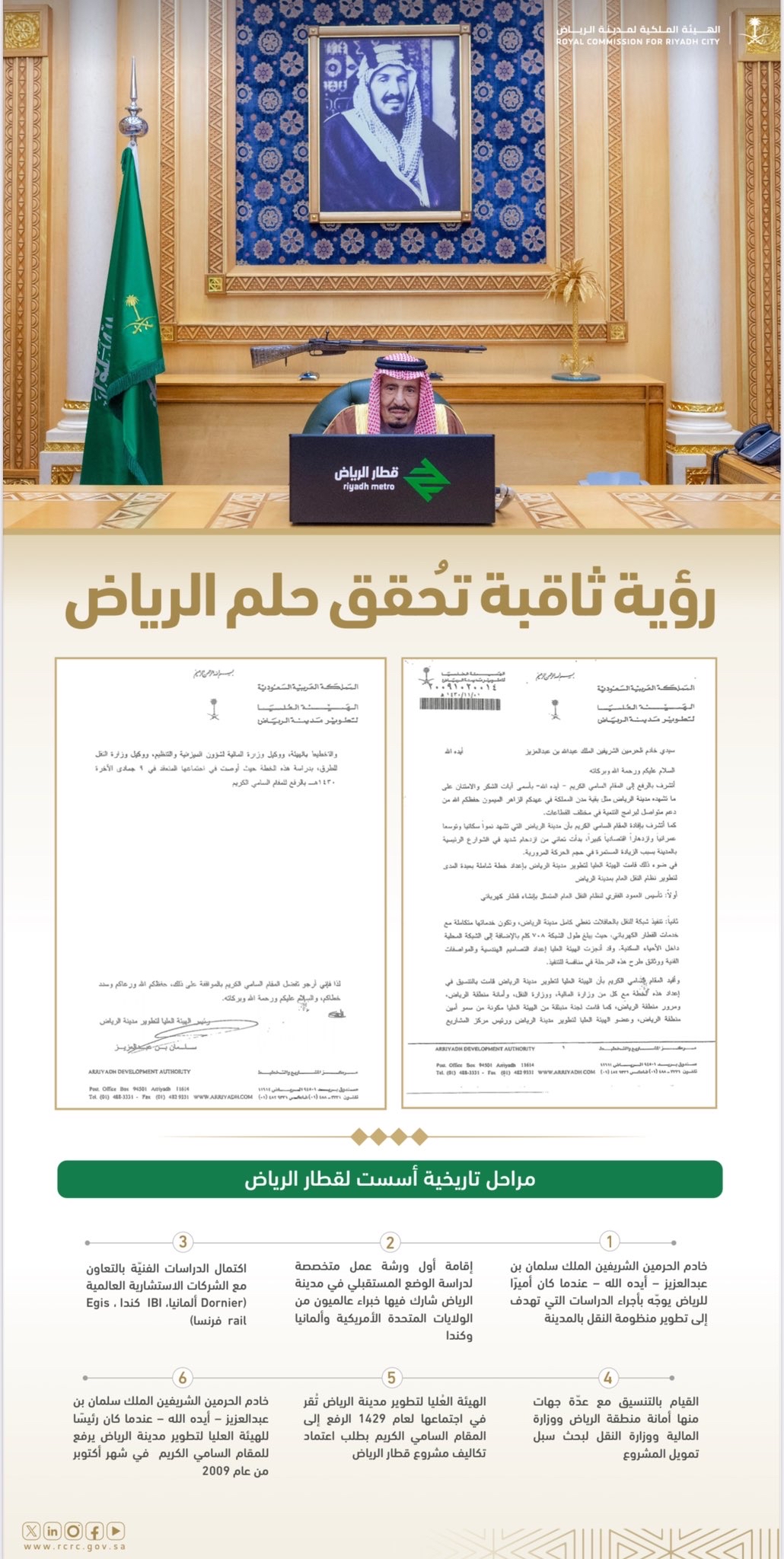 وتأتي هذه الوثيقة لتؤكد بعد نظر الملك سلمان، وسعيه الدؤوب لتطوير مدينة الرياض، وتحويلها إلى عاصمة عصرية تواكب أحدث المعايير العالمية.