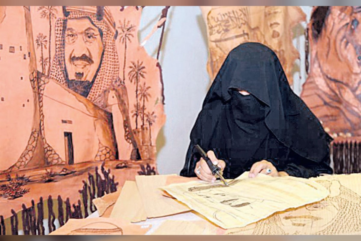 وأكدت أن النقش على الجلود يتطلب دقة عالية حيث لا مجال للهفوات أو الأخطاء التي قد تتسبب في إتلاف قطعة الجلد بسبب امتصاصه للون وثبات الحرق.