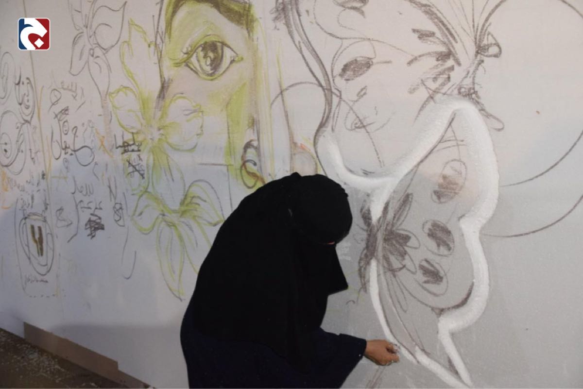 وأكد الفنان التشكيلي حافظ المؤمن على أهمية العمل التطوعي، مُشاركاً بأعمال جدارية جمعت بين النحت والخطوط والرسم، في تعاونٍ فنيّ جمعه مع الخطاطين والمتدربات لإخراج عملٍ إبداعي مُشترك.