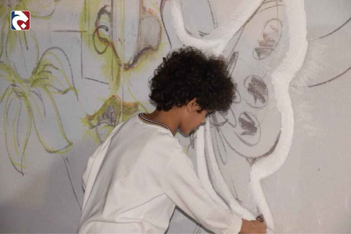 ولم تقتصر المشاركة على الفنانين المخضرمين، بل امتدت لتشمل الأجيال الناشئة، حيث أبدعت الفنانة التشكيلية منى عباس في عملٍ نحتيّ مميز بمشاركة حفيدها ”جواد“، في مشهدٍ يُجسد تناقل إرث الفنون الجميلة بين الأجيال.