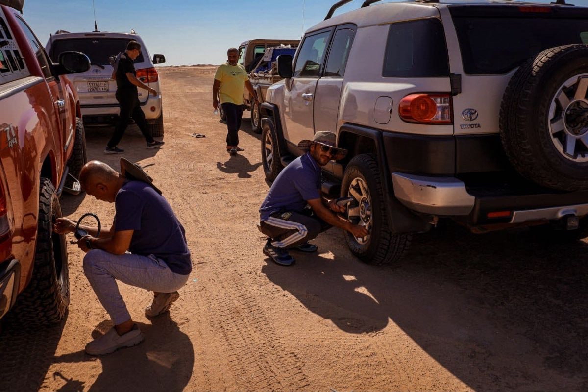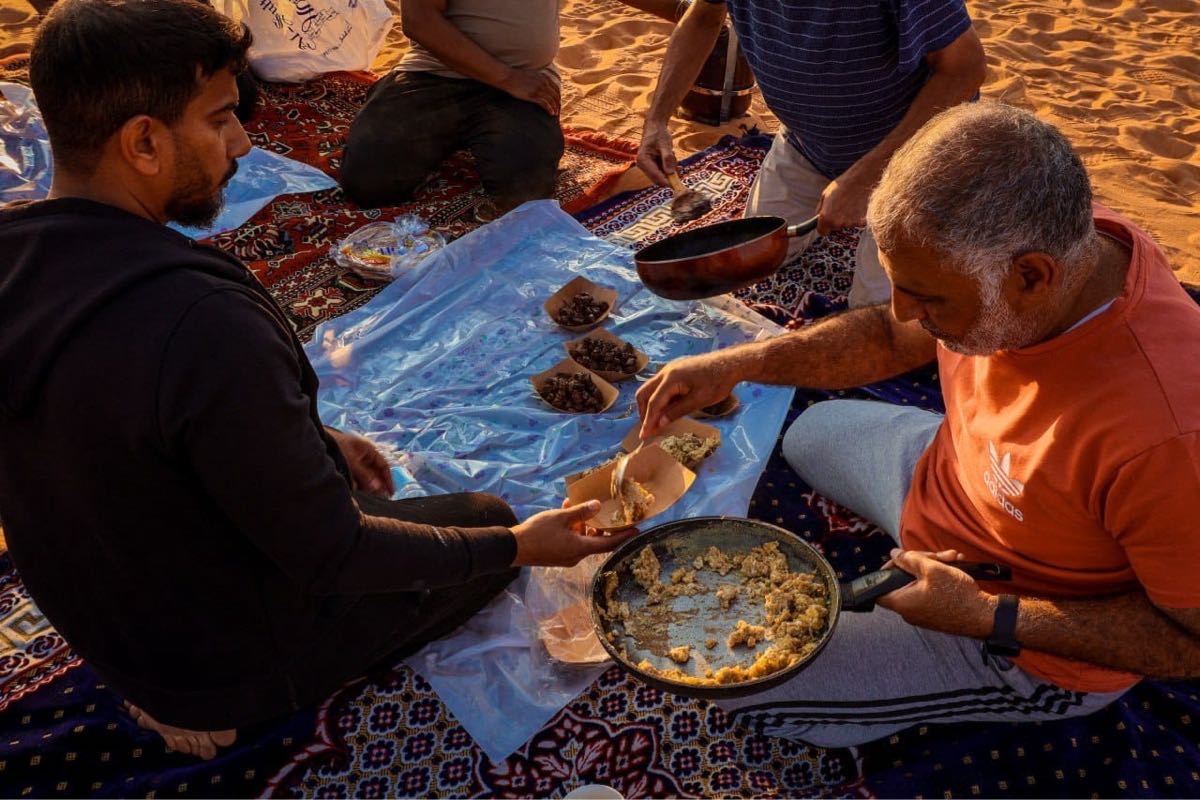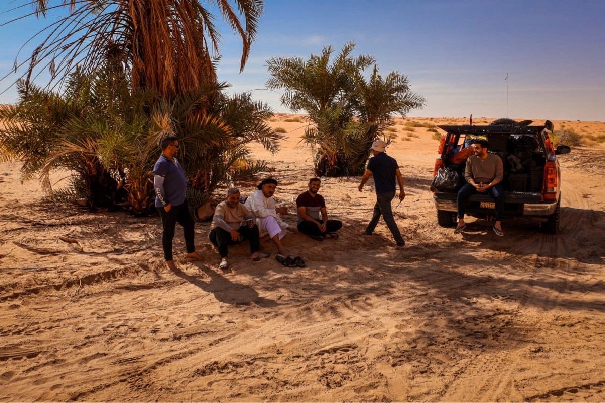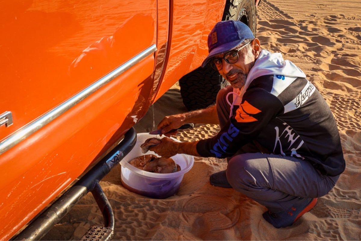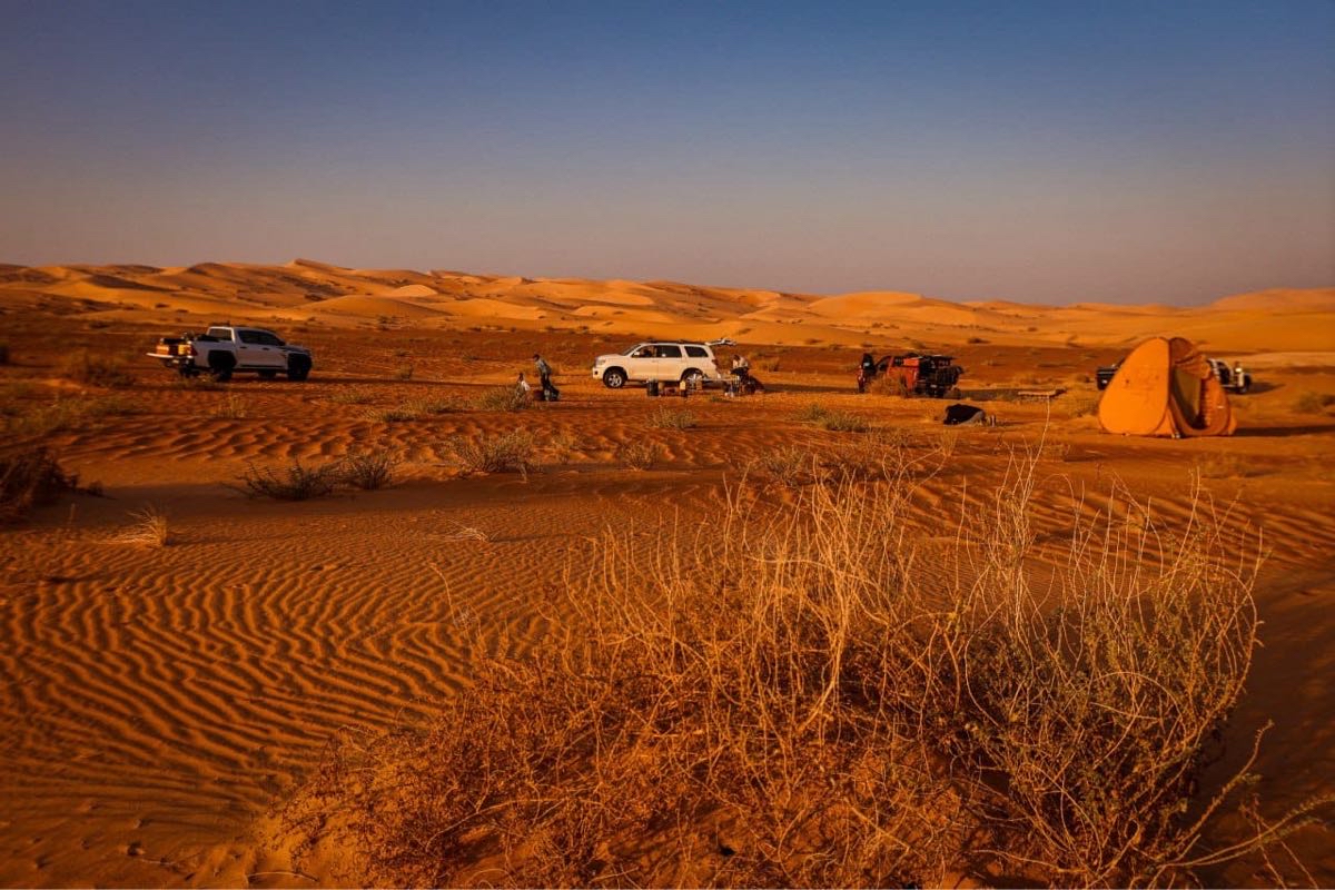 وأضاف يبدأ يوم المغامرين فجراً بالصلاة الجماعية، ثم تناول ”تصبيرة“ خفيفة قبل الفطور الرئيسي، وبعد ذلك، يفكك الفريق الخيام ويحمل المعدات في السيارات ليتوجه نحو وجهة جديدة. وخلال النهار، كانوا يتوقفون بشكل دوري للراحة، من خلال إعداد وجبات الغذاء أو العشاء، يليها تناول الشاي.