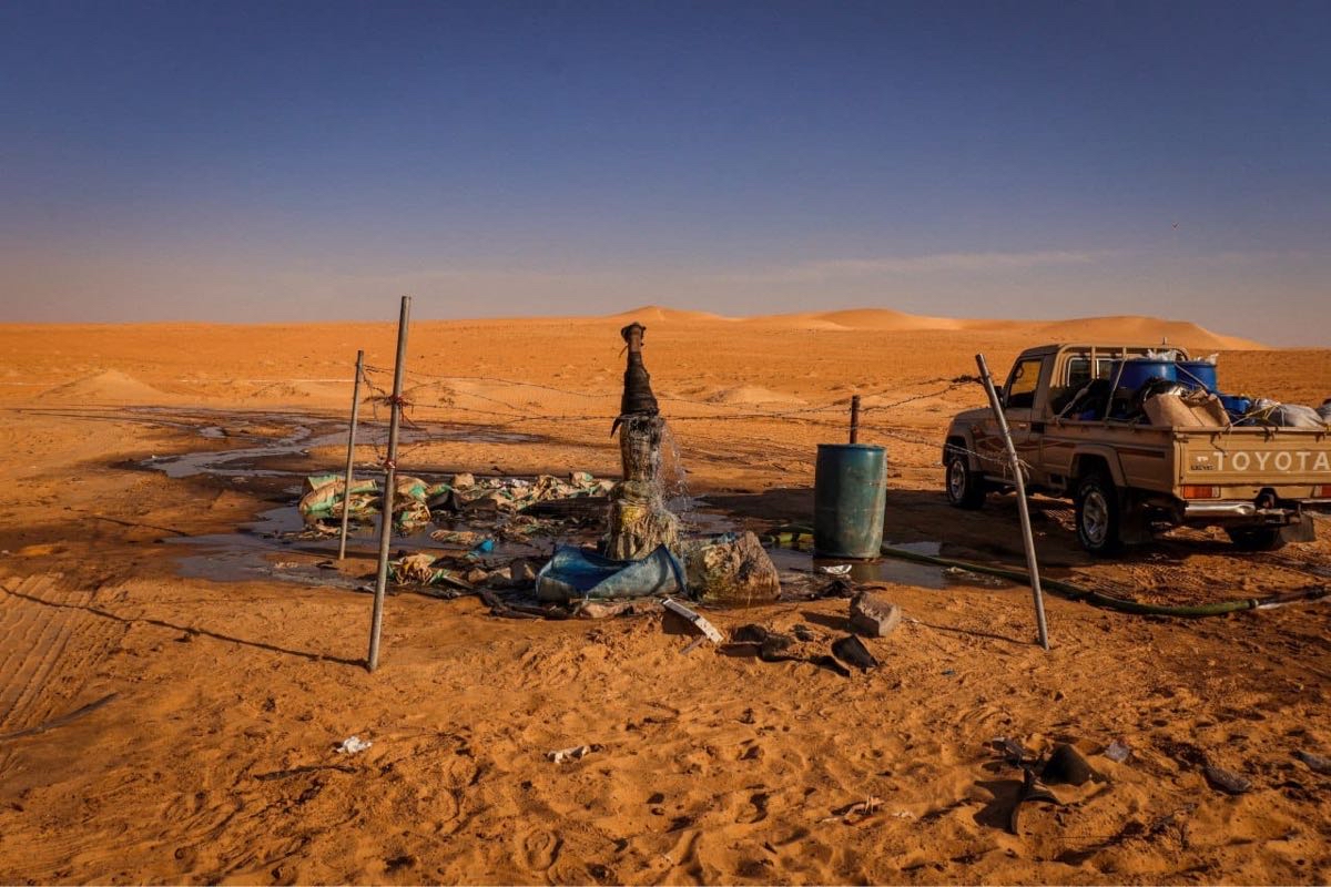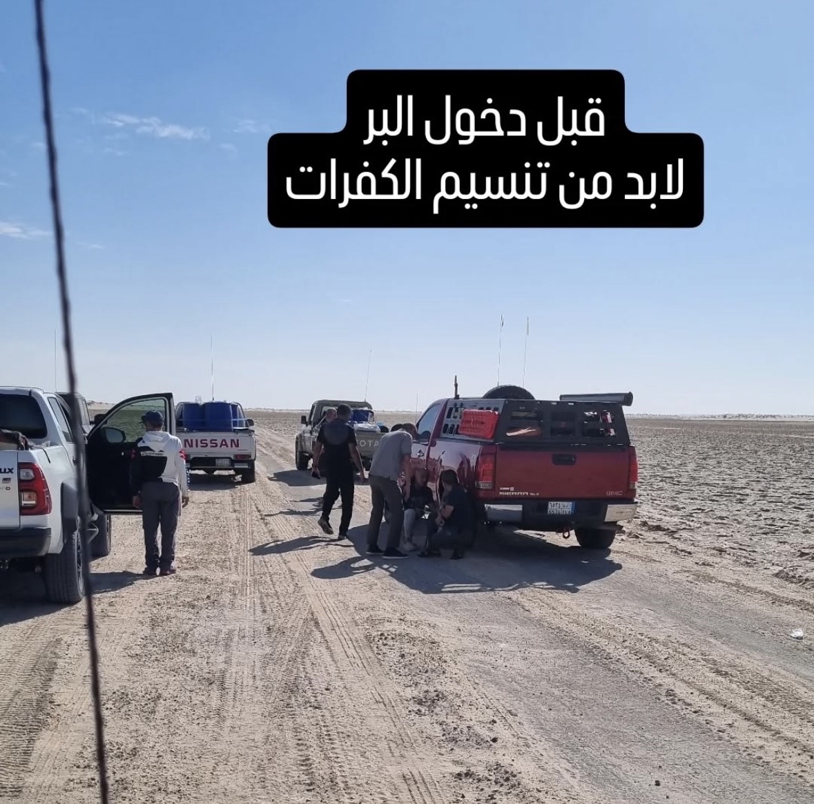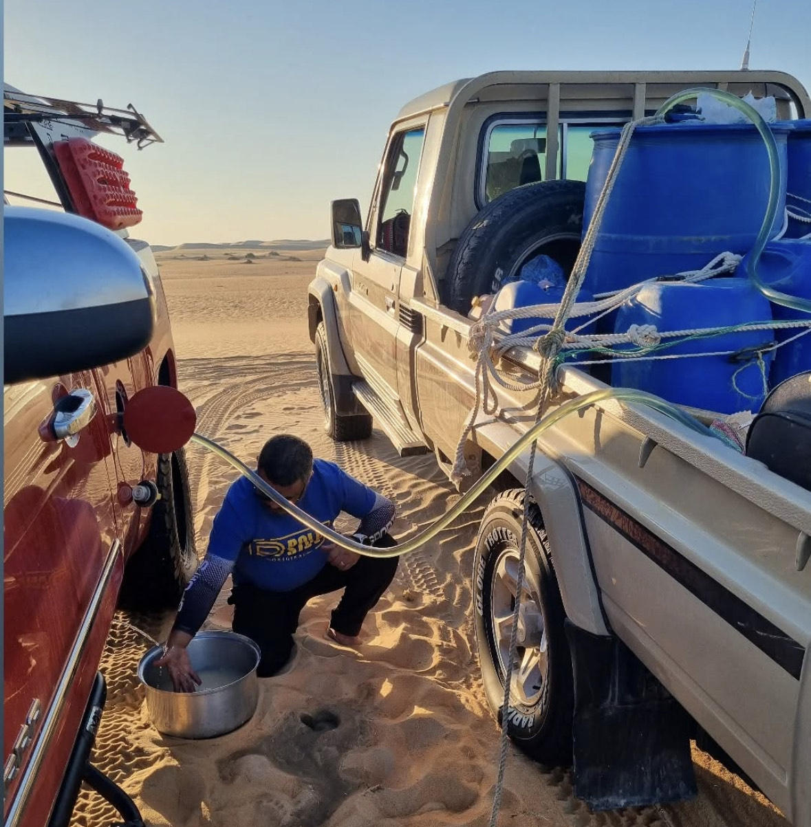 وتابع: انطلق الفريق بسيارات الدفع الرباعي السبع، محمّلين بكل ما يلزم من براميل الماء والديزل والطعام الذي يكفي لستة أيام، بالإضافة إلى أدوات الطهي.