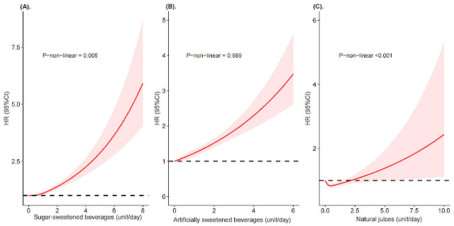 تناول كميات كبيرة من المشروبات المحلاة بمحليات صناعية [6] والمشروبات المحلاة بالسكر وكذلك العصائر الطبيعة (التي لم يضف إليها لا المحليات الصناعية ولا السكر) مقترن اقتراناً طرديًا بالإصابة بمرض الكلى المزمن وفقًا لدراسة [1] نُشرت في مجلة Frontiers in Nutrition في 25 نوفمبر 2024. أجرى شياو يو داي، Xiao-Yu Dai من جامعة العلوم والتكنولوجيا الإلكترونية في ميانيانغ Mianyang, وزملاؤه تجربة لتحديد طبيعة العلاقة بين المشروبات المحلاة بمحليات صناعية (بدائل السكر [6] والمشروبات المحلاة بالسكر بخطر الإصابة بمرض الكلى المزمن [9] . شمل التحليل حوالي 192 ألف مشارك من البنك الحيوي في المملكة المتحدة UK Biobank تم متابعتهم لمدة تزيد قليلًا عن عشر سنوات ونصف السنة في المتوسط.