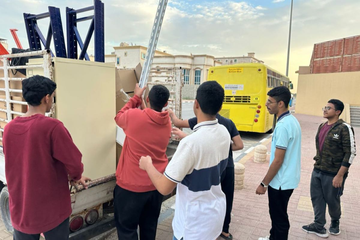 وشملت عملية النقل طاولات حاسب آلي ورفوفًا وسجلات مدرسية، ليُسهم الشباب بدورهم في دعم زميلاتهم وتوفير بيئة دراسية محفّزة.