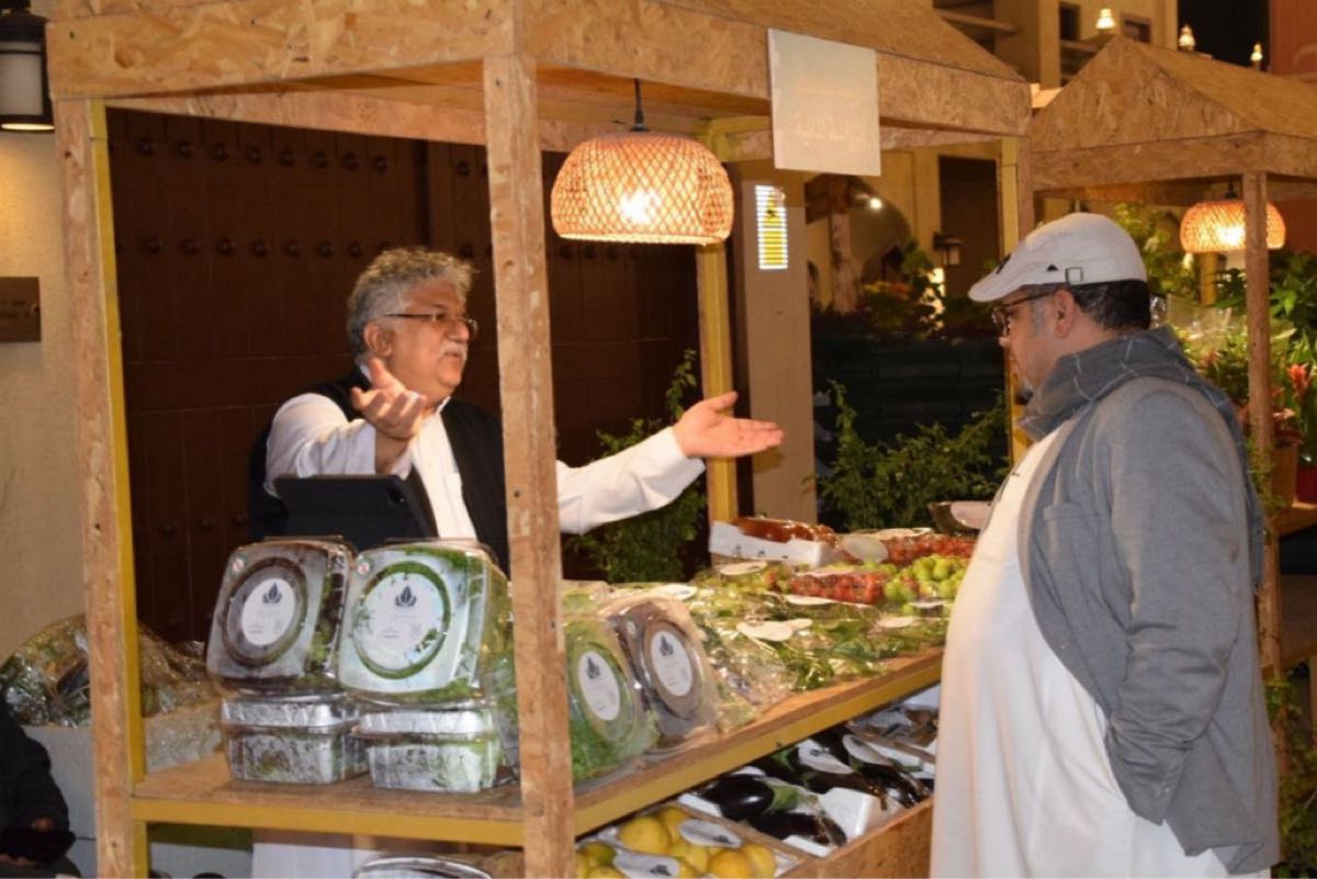 ويضم السوق 60 ركنًا متنوعًا، يعرض تشكيلة واسعة من الخضروات والفواكه الطازجة، بالإضافة إلى العسل والتمور ومنتجات الألبان والصناعات التحويلية، مثل دبس التمر وصلصة الطماطم العضوية بالأعشاب.