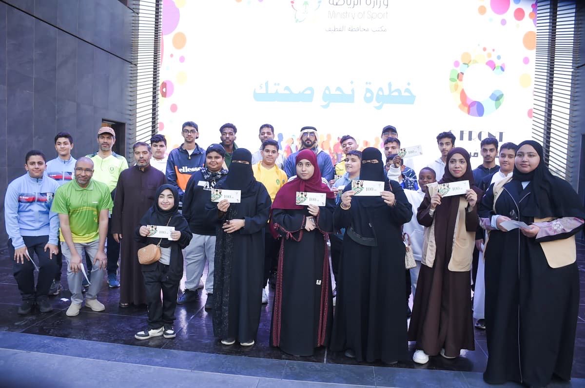شارك 500 شخص من مختلف الفئات العمرية في فعالية ”خطوة نحو صحتك“ التي نظمها فريق منارات مشرقة بالتعاون مع وزارة الرياضة في مجمع سي فرونت بالقطيف، يوم الجمعة.