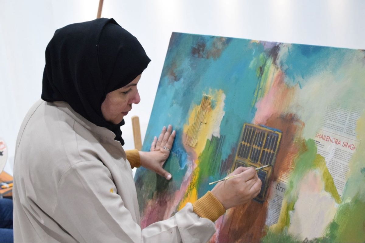 ضمن فعاليات برنامج ”لا تطرق الباب“، نظمت جمعية الثقافة والفنون بالدمام ورشة ”الرسم المباشر والعزف المباشر“ التي جمعت بين إيقاع الألوان وأنغام الموسيقى.