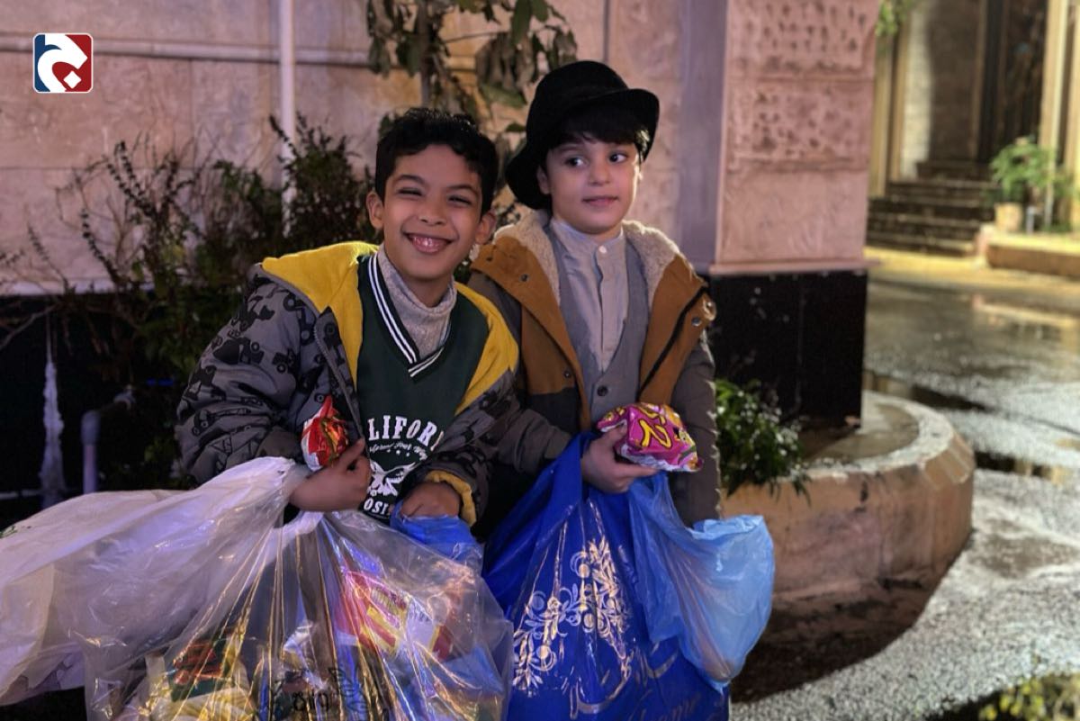 فمع ساعات المساء الأولى، خرج الأطفال إلى الشوارع مرتدين ملابسهم التقليدية، حاملين أكياس ”الناصفة“، يتنقلون بين المنازل مرددين الأهازيج الشعبية المعهودة في هذه الليلة.