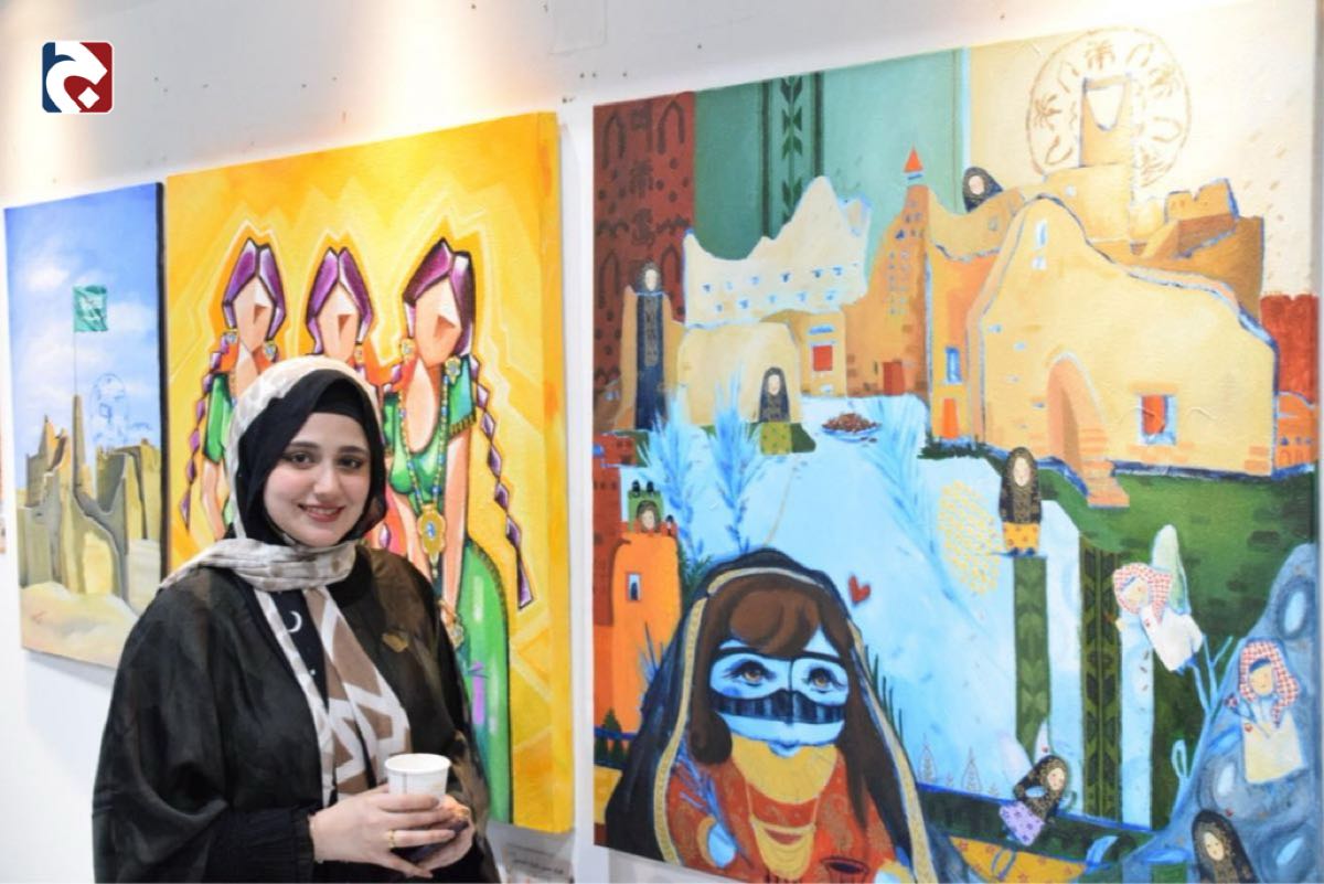 من جانبها، أوضحت الفنانة التشكيلية ياسمين عبدالناصر أنها شاركت بلوحة بعنوان ”وطن“، تعبر عن دور المرأة السعودية في دعم الريادة، وكيف أنها جزء من التراث وانتقلت لأدوار قيادية أكبر.