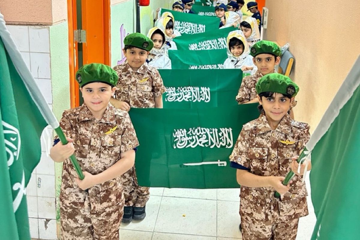 وبدأت الفعاليات اليومية في جميع المدارس برفع العلم السعودي، حيث اصطف الطلاب في مشهد مُهيب، مُرددين النشيد الوطني بصوت واحد، تعبيرًا عن وحدتهم الوطنية.