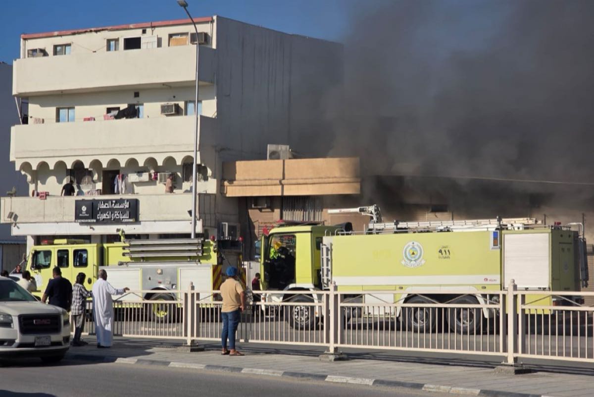تباشر فرق الدفاع المدني متابعةَ وإطفاء حريق اندلع في غرفة لسكن عمالة بجانب ورشة لإصلاح السيارات تقع في حي الدشة بجزيرة تاروت، "مقابل سوق السمك المركزي".