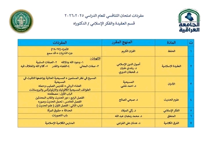 ”فكر الدكتور الميلاد“ ضمن مفردات دكتوراه الفكر الإسلامي بالجامعة العراقية