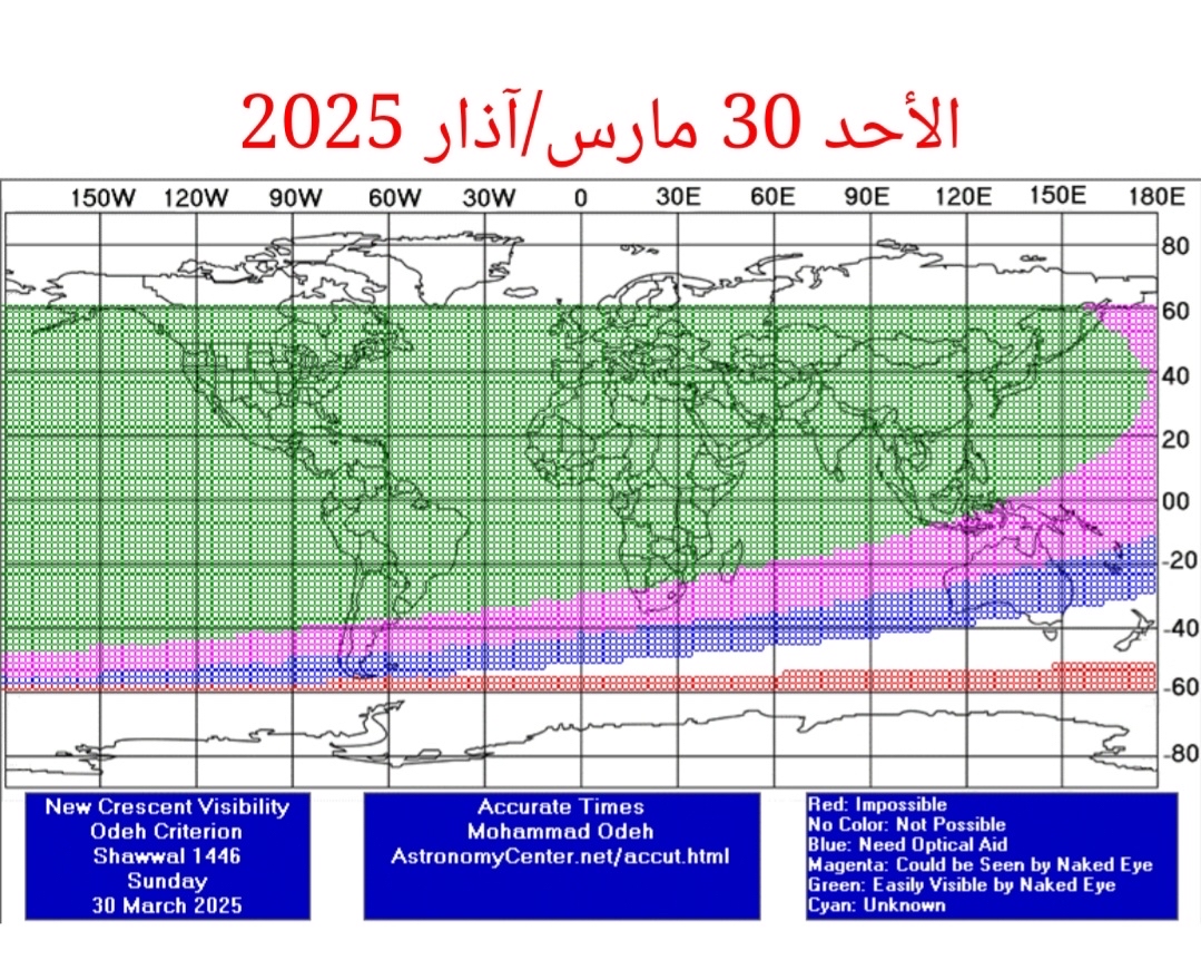 وبناءً على هذه المعطيات الفلكية، توقع الصويلح أن تكون رؤية الهلال بالعين المجردة ممكنة بسهولة في أفق المنطقة الشرقية، وفي أغلب مناطق العالم.