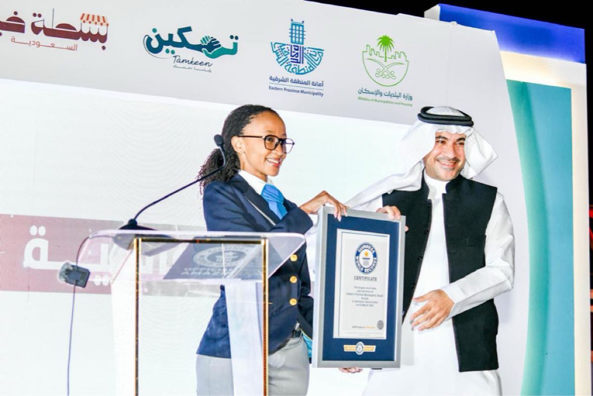 وتم تسجيل الرقم القياسي بحضور ممثلين عن موسوعة غينيس العالمية، ضمن فعاليات مبادرة ”بسطة خير السعودية“ التي أطلقها فريق دعم وتطوير وتمكين الباعة الجائلين بوزارة الشؤون البلدية والقروية والإسكان، بقيادة صاحبة السمو الملكي الأميرة نجود بنت هذلول بن عبد العزيز، ونظمتها أمانة المنطقة الشرقية.
