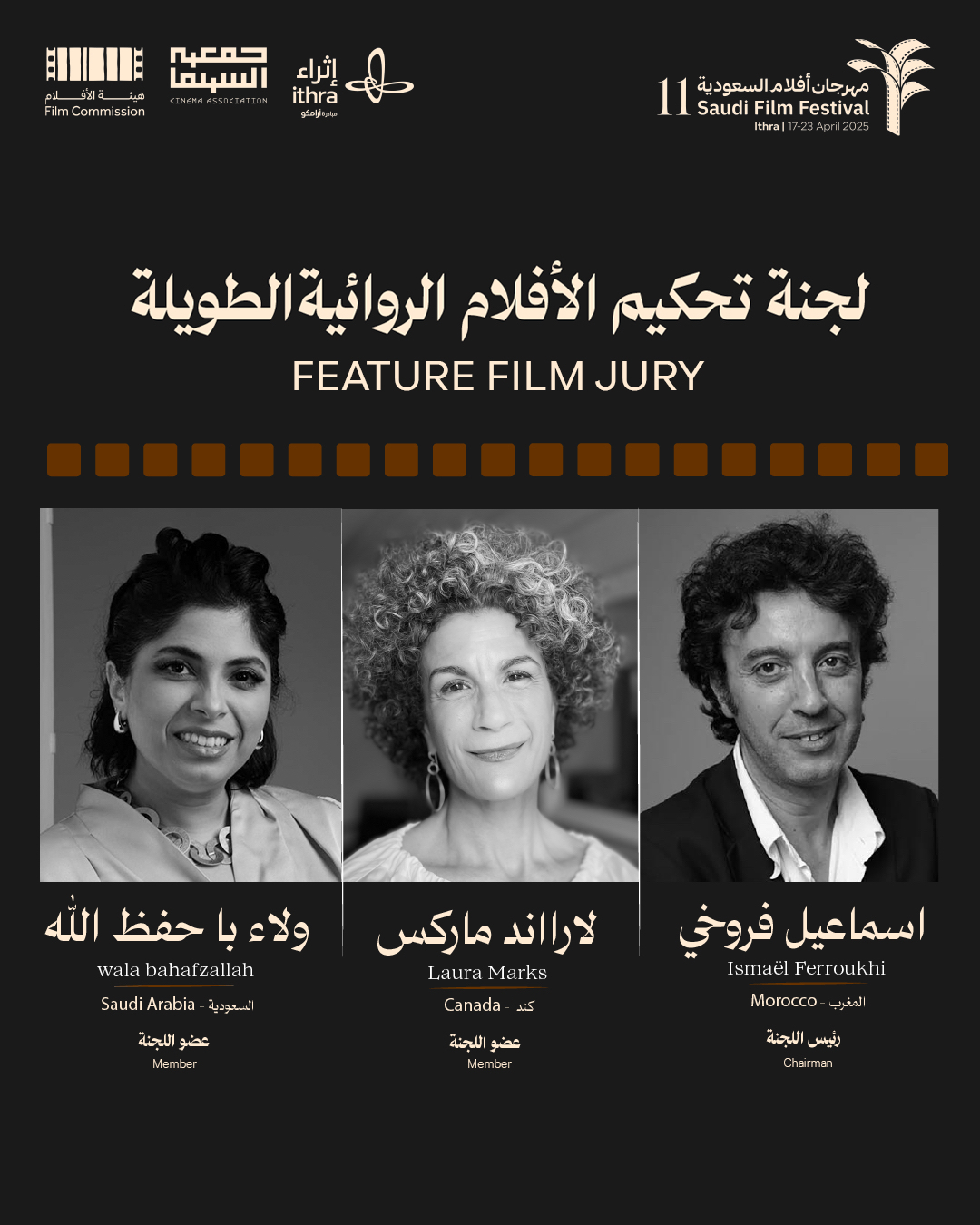 وتضم اللجنة في عضويتها صانعة الأفلام السعودية ولاء باحفظ الله، المديرة التنفيذية لشركة روزا للإنتاج والمعروفة باهتمامها بقضايا المرأة والسرد الاجتماعي، بالإضافة إلى الدكتورة لورا يو ماركس، الأستاذة بجامعة سايمون فريزر بكندا والباحثة المتخصصة في الفلسفة والوسائط البصرية ومن مؤلفاتها The Fold وHanan al-Cinema.