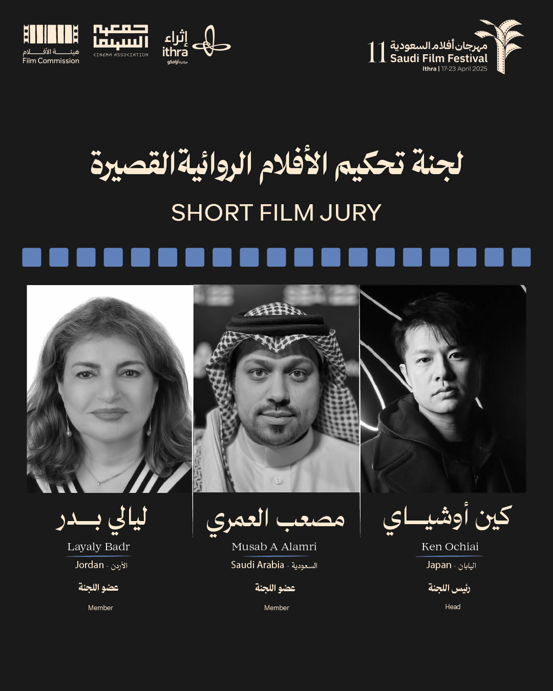 تُشرف على تقييم أعمال مسابقة الأفلام الروائية القصيرة لجنة تحكيم يرأسها المخرج الياباني كين أوشياي، وتضم في عضويتها كلًا من المخرج والأكاديمي السعودي الدكتور مصعب العمري، والمخرجة وكاتبة السيناريو ليالي بدر، وهم من الأسماء ذات التجربة المتنوّعة في الإخراج والكتابة وتطوير المحتوى.