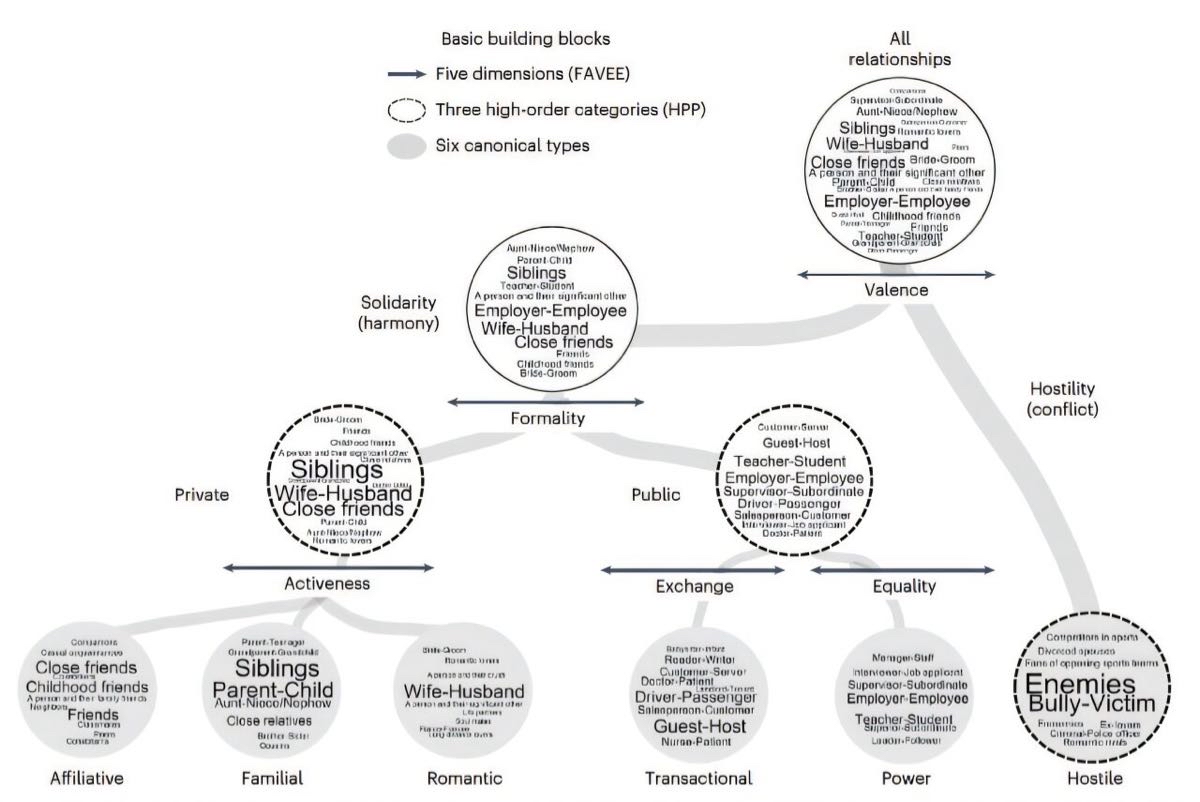 طوال مراحل حياتهم، من المعروف أن البشر يكونون شبكة معقدة من العلاقات الاجتماعية ويتعاملون ضمنها، بدءًا من تكوين روابط صداقات ومعارف إلى روابط عائلية وعلاقات رومانسية ومهنية وانتهاءً بتفاعلات بينية على الإنترنت في عصرنا الحاضر. على مدار العقود الماضية، حاول بعض خبراء السلوك استيضاح كيف يفهم الناس هذه الأنواع المختلفة من العلاقات ويدركون مغزاها.