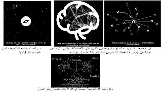”استخدمنا بعد ذلك طرق تقليص الأبعاد [3]  والتحليل العنقودي [4]  لهذه البيانات في محاولة لإيجاد التنظيم الأساس للعلاقات البشرية.“