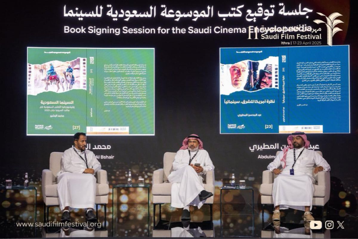 واختُتمت البرامج الثقافية لليوم الأول بجلسة توقيع كتابين ضمن مبادرة الموسوعة السعودية للسينما التي أطلقتها جمعية السينما، وهما: ”السينما السعودية وفيلموجرافيا الأفلام السعودية...“ للدكتور محمد البشير، و”نظرة أمريكا للشرق“ للمخرج عبدالمحسن المطيري، وذلك بالتزامن مع تدشين المجموعة الثانية من إصدارات الموسوعة.