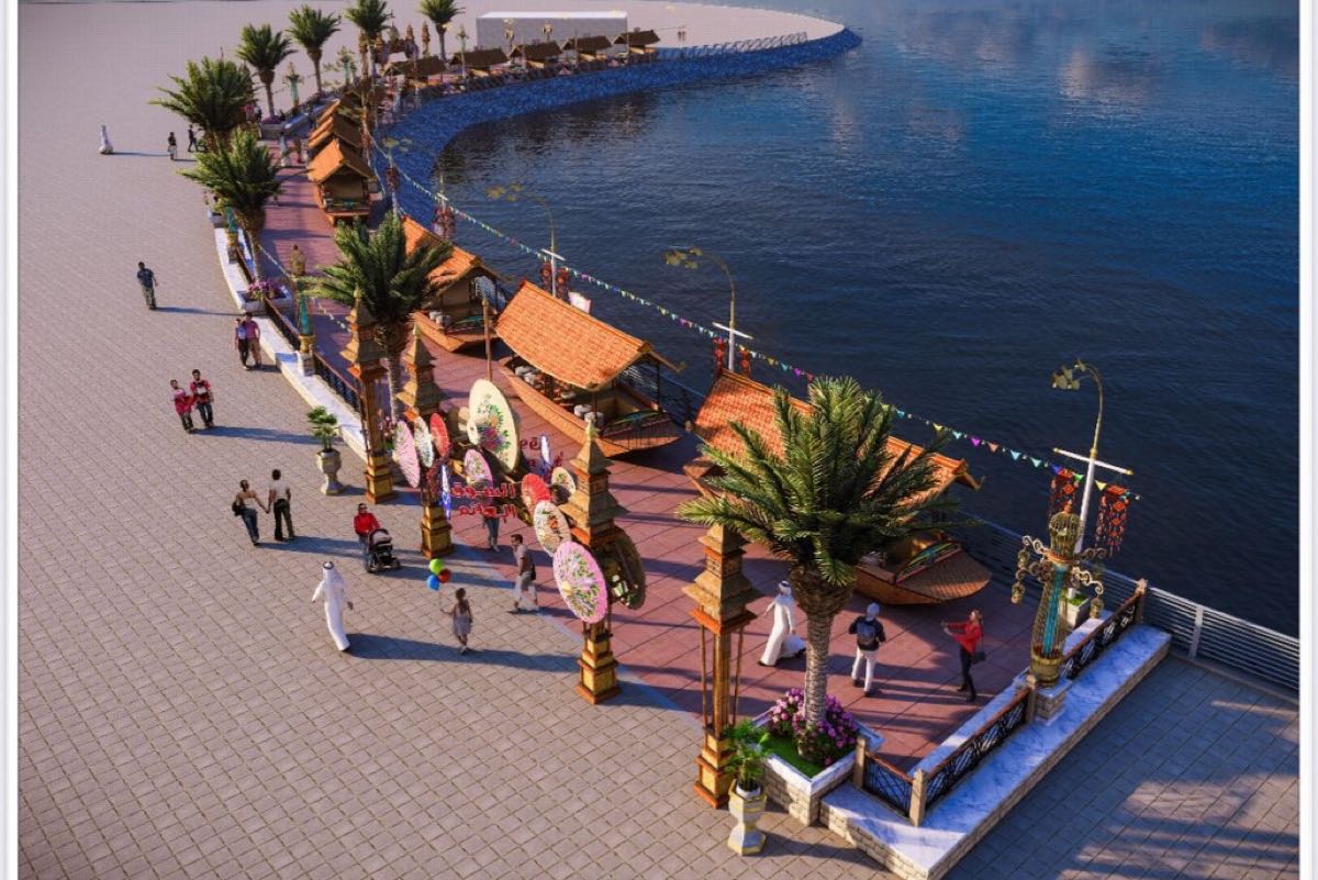 وأضاف أن المشروع يتوسط بحيرة اصطناعية تضيف بعدًا جماليًا وسياحيًا مميزًا، وسيشمل سوقًا عائمًا يُقام فوق مياه البحيرة، بالإضافة إلى مسرح مفتوح يتسع لـ 7,000 مقعد وقابل للتوسعة إلى 10,000 مقعد لاستضافة أكبر الفعاليات والعروض الفنية والثقافية.