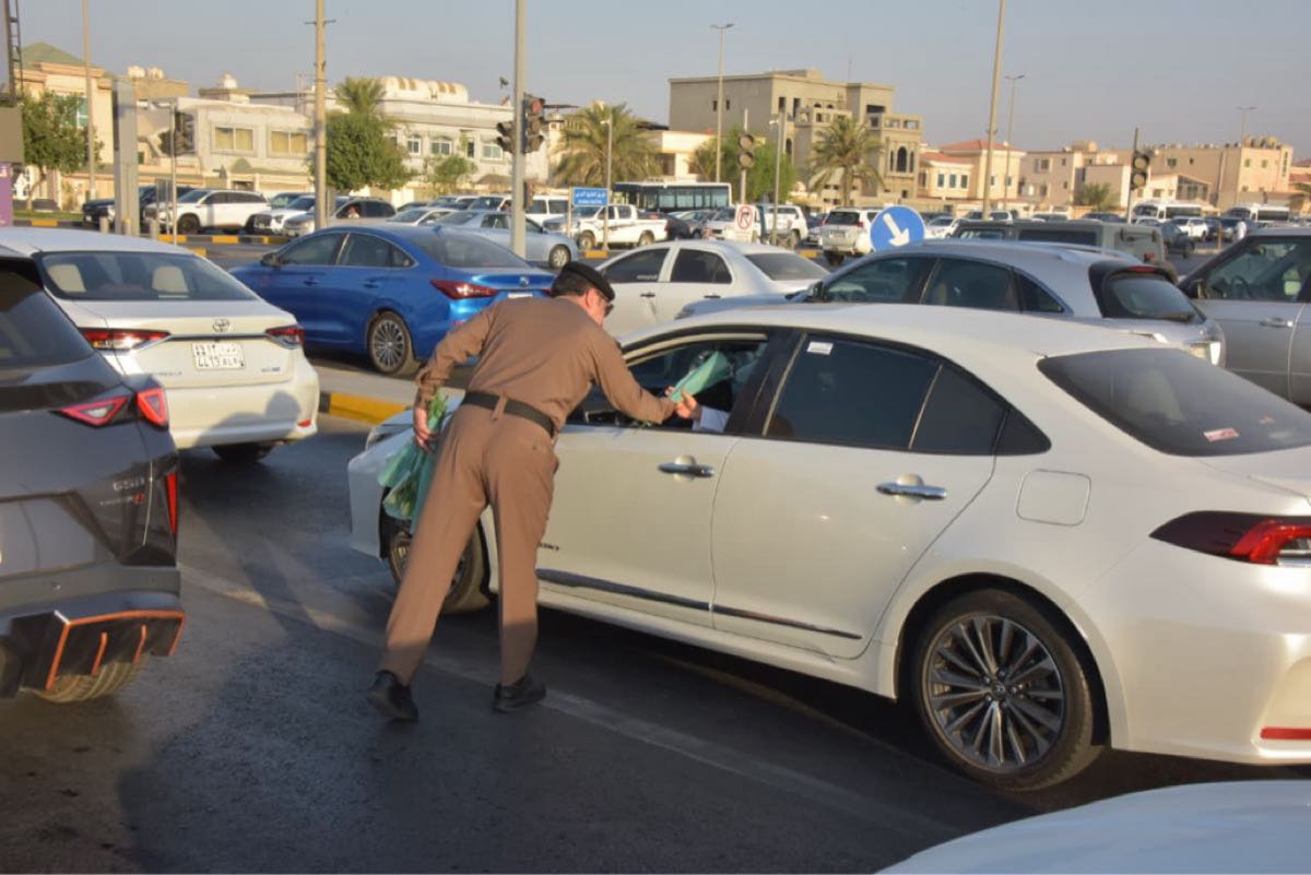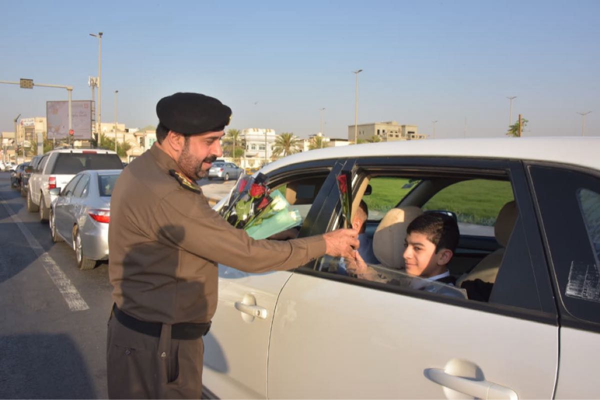 وفي لفتة إنسانية لاقت استحساناً واسعاً، قام رجال المرور في العديد من التقاطعات في المحافظة من بينها تقاطع شارع الخليج مع شارع الرياض، أحد أكثر التقاطعات حيوية بالمحافظة، بتوزيع الورود والمنشورات التوعوية على الطلاب وأولياء أمورهم، بهدف رسم البهجة على وجوههم في أول يوم دراسي وتعزيز الوعي المروري بأسلوب ودي.