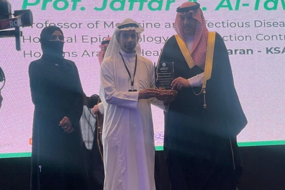 كُرِّم البروفيسور جعفر علي آل توفيق بجائزة ”البحث والابتكار“ المرموقة من الجمعية السعودية للأمراض المعدية لدى الأطفال.